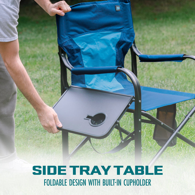 Experience unparalleled comfort and warmth with the Bliss Hammocks® by SUN JOE® 24V Heated Directors Seat, designed to elevate any outdoor adventure. This durable, yet stylish, chair available in 4 color way options (brown, blue, green, and gray) features a classic director-style frame with a generously padded 21-inch wide seat and backrest, supporting up to 400 lbs. Powered by Sun Joe's IONMAX 24V 2.0-Ah battery system, the chair boasts dual heat pads—strategically placed in the seat and backrest—offering three customizable temperature settings to keep you cozy in any weather. The collapsible powder-coated steel frame ensures easy transport and storage, while the foldaway side tray table with built-in cupholder keeps your drinks and snacks within reach. An auto power-save feature and 5-minute safety shut-off maximize battery efficiency, letting you enjoy warmth for longer. Perfect for camping, sporting events, or backyard gatherings, this lightweight 14.8-lb chair combines functionality with premium comfort, making it the ultimate outdoor companion. Comes with a 1-year warranty for added peace of mind. Find Your Bliss® and Go With Joe®.