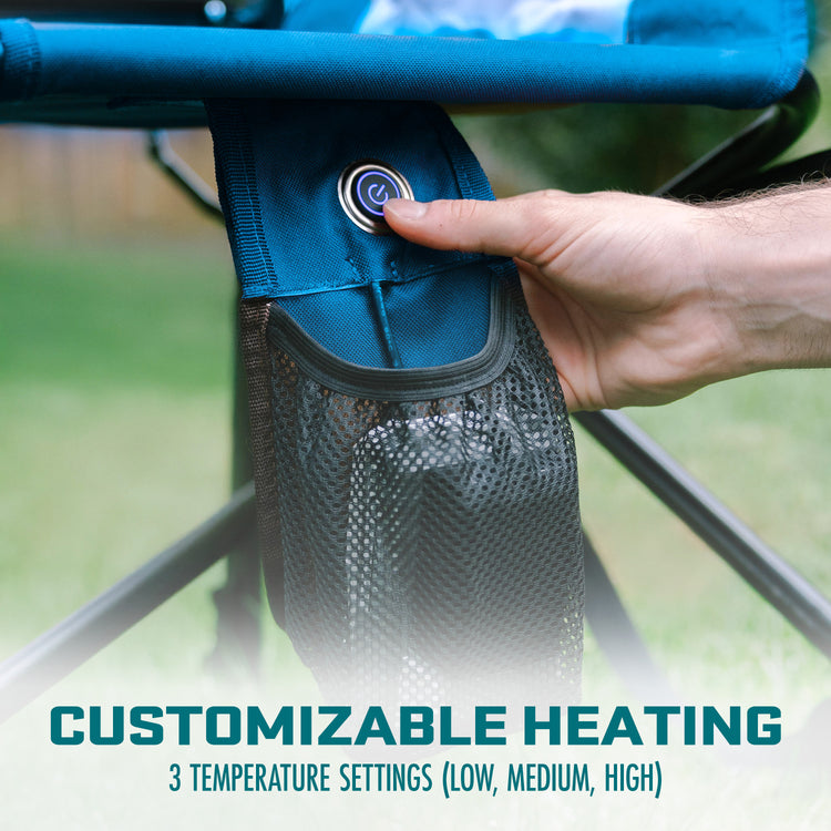 Bliss Hammocks BHC-24VH-BLU 24V Heated Directors Seat | 21-in Wide | 3 Temp Settings | 2.0-Ah Battery + Charger