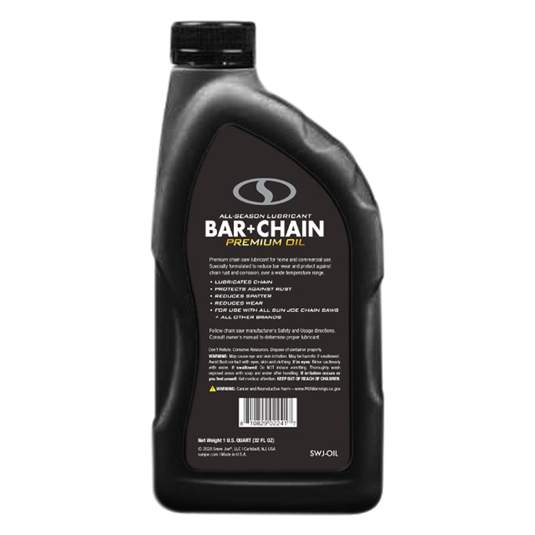 Sun Joe SWJ-OIL Premium Bar, Chain and Sprocket Oil | All Season Chainsaw Chain Lubrication | Universal Chain Saw Chain Oil for Fast Efficient Cutting | 1-Quart