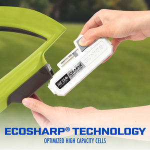 - 24V* EXCLUSIVE ECOSHARP® LITHIUM-ION TECHNOLOGY: High capacity cells with no-fade power, ensuring maximum job performance