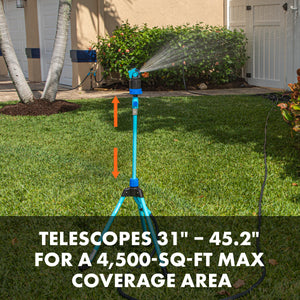 - Tripod sprinkler telescopes from 31” to 45.2” for a coverage area of up to 4,500 square feet