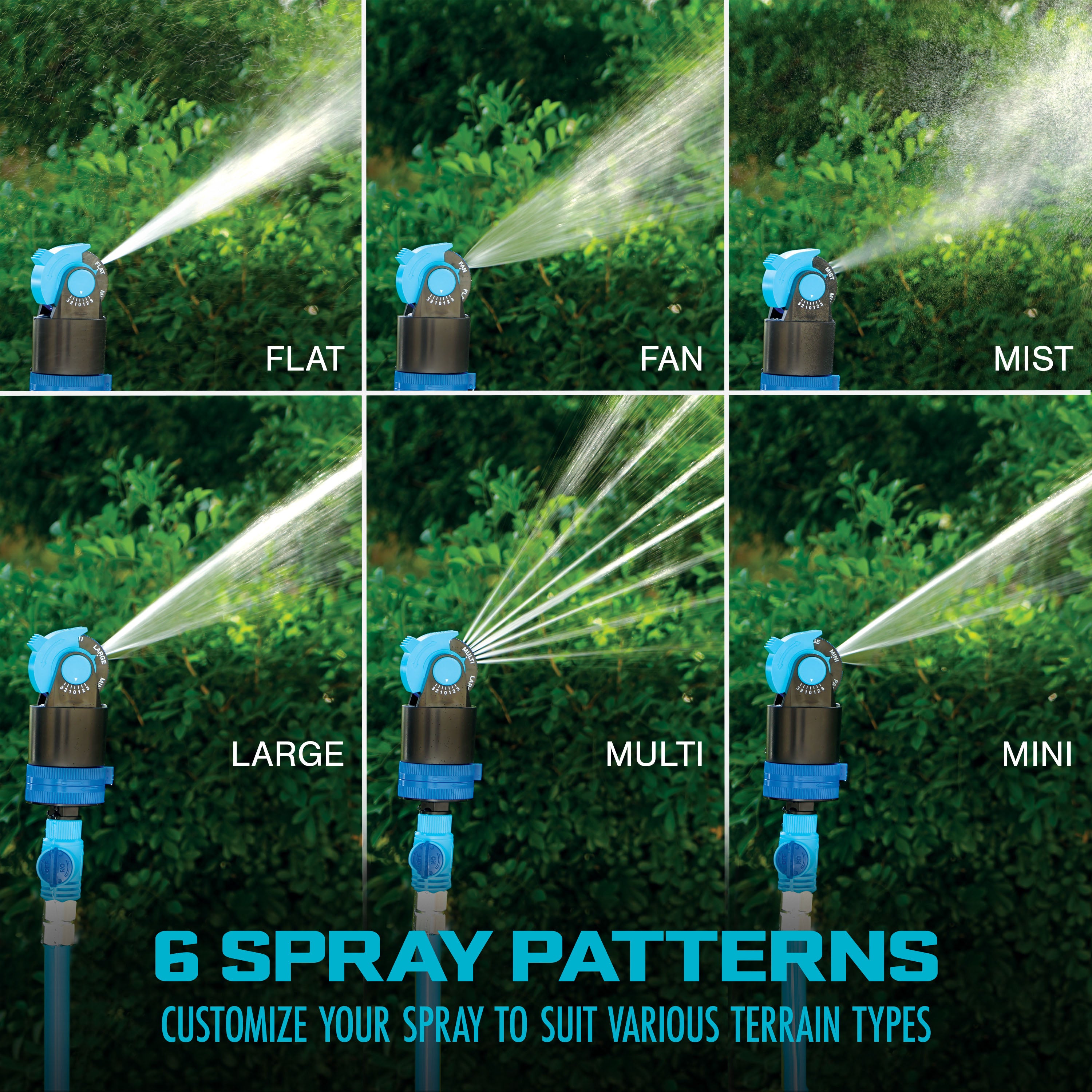 - 6 ADJUSTABLE SPRAY PATTERNS: Flat, fan, mist, large, multi and mini
