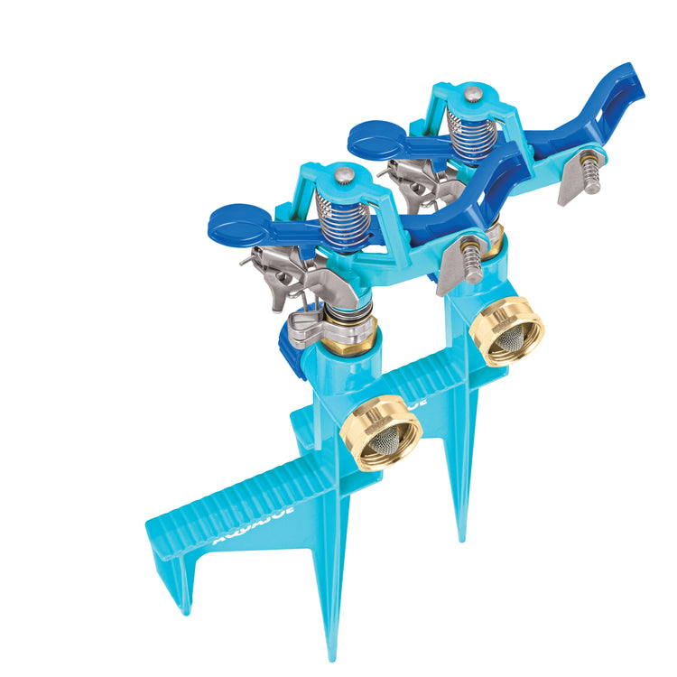 Aqua Joe AJ-ISH-2PK Indestructible Zinc Impulse 360° Sprinkler W/ Step Spike | Customizable Coverage | 1,400 Sq. Ft. Max Coverage | 2 Pack