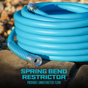 - SPRING BEND RESTRICTOR: Prevents twisting at the spigot, ensuring unrestricted water flow