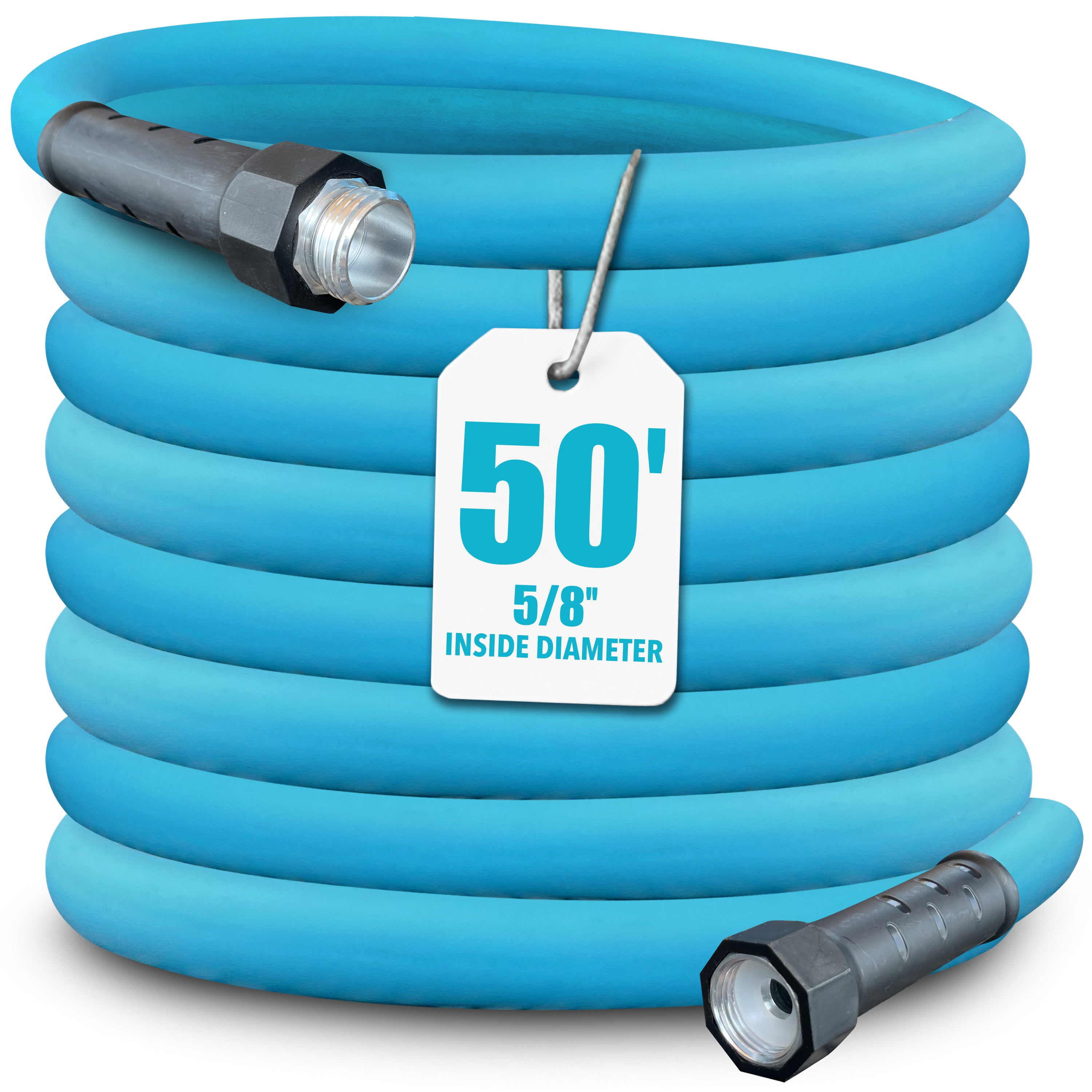 Aqua Joe AJPGH50-PRO HybridFLEX Professional-Grade Hybrid Polymer Garden Hose | 50-Ft | 5/8-inch | W/ Dual Swivel Grenade Grips | 500-PSI Burst