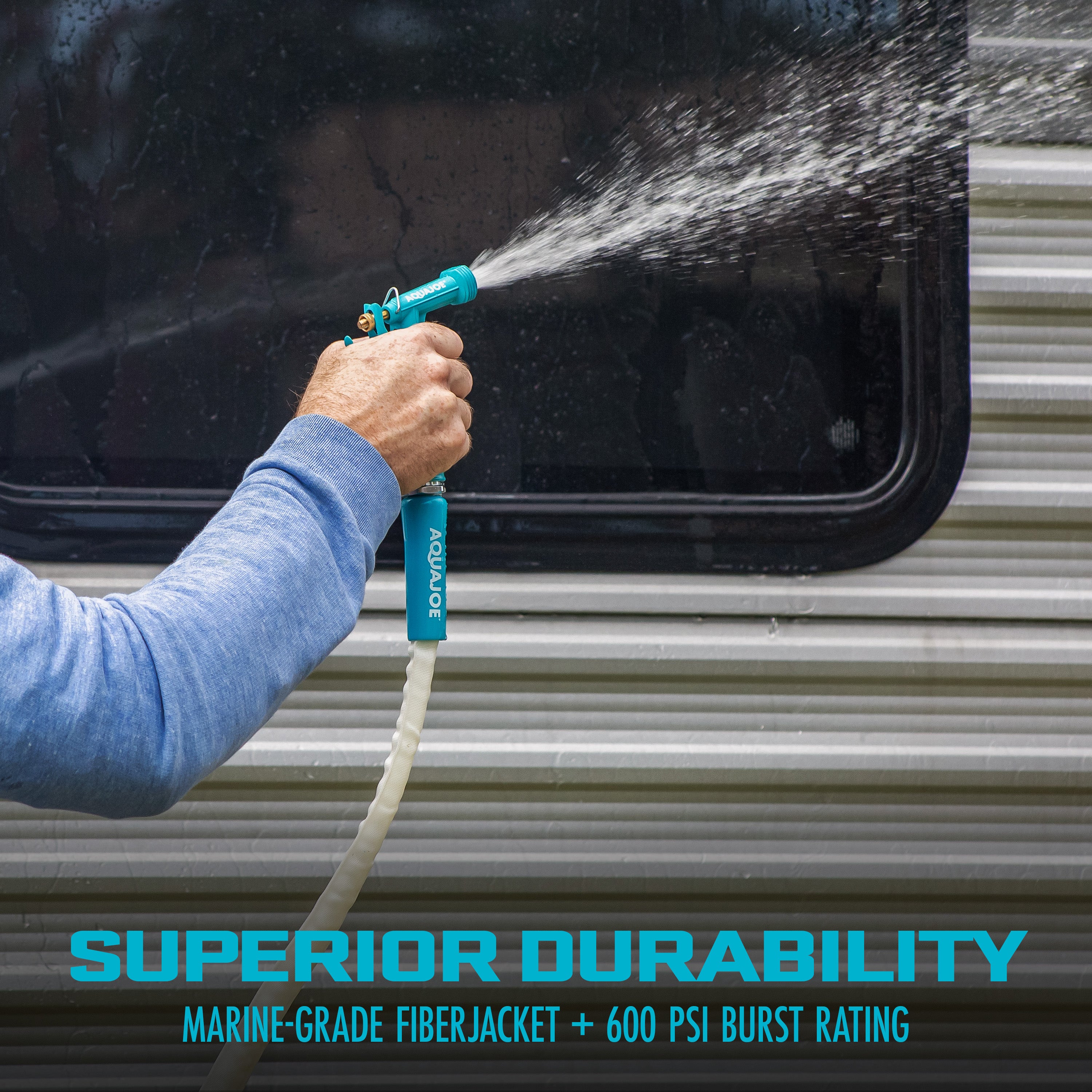 Aqua Joe Marine-Grade All-Purpose RV Hose + Multi-Function Hose Nozzle | 50-Foot | 7 Spray Patterns