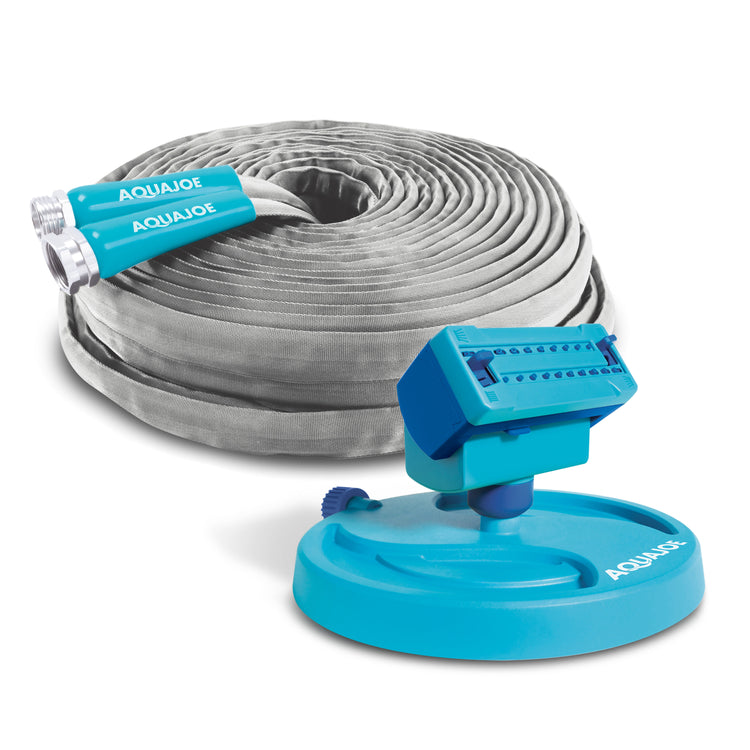 Aqua Joe Oscillating Sprinkler + 100ft Fiberjacket Hose, 4,250 Sq. Ft. Max Coverage