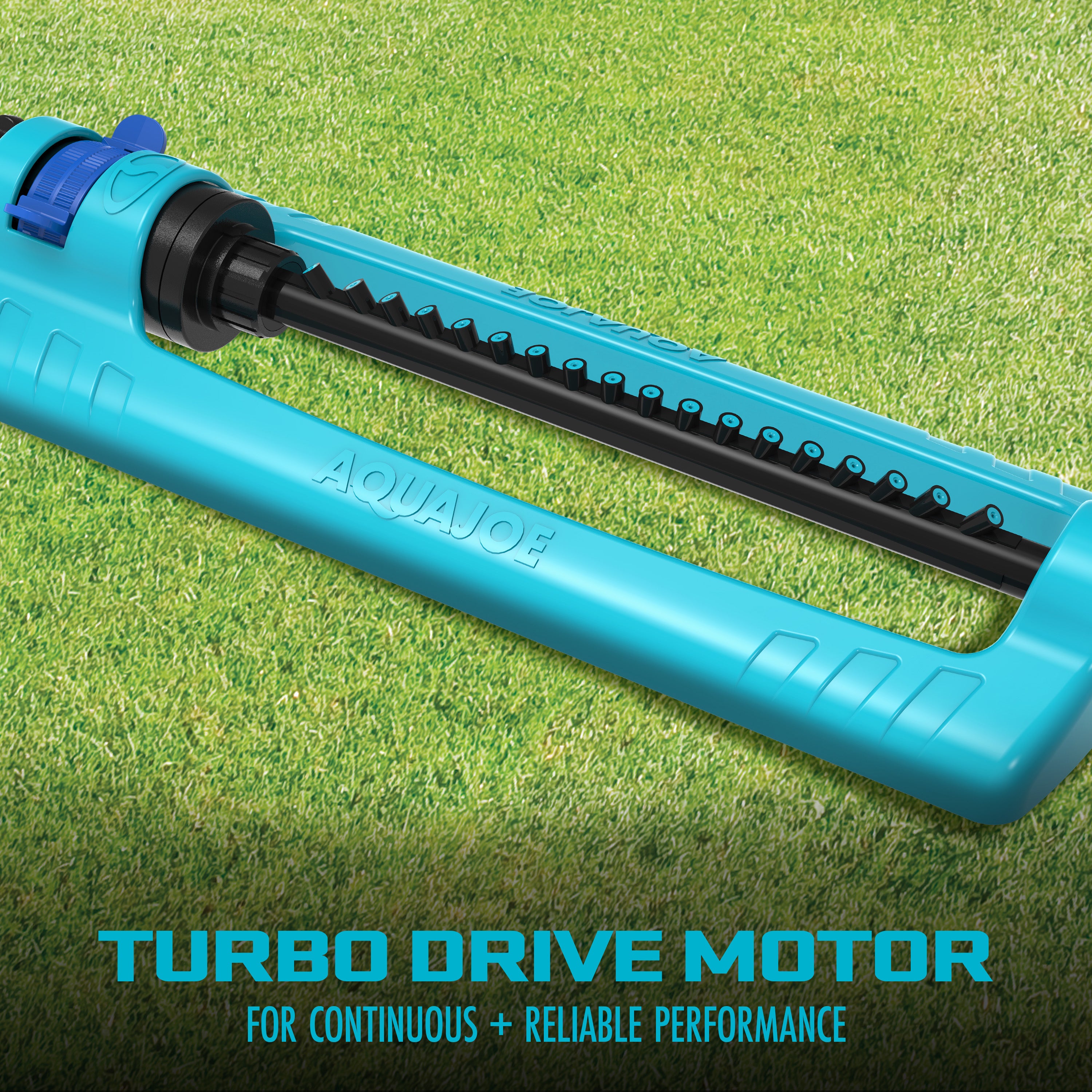WATER YOUR WAY! Keep your grass green and lawn lush with the Indestructible Metal Base Oscillating Sprinkler from AQUA JOE. With AQUA JOE’s completely customizable coverage patterns, you’ll have the control you need to make your home the envy of the entire neighborhood. Just slide and select your range settings to reach every corner of your yard – from the smallest lot to the largest lawn! The 18 sturdy, plastic nozzles provide even water flow and precise dispersal — up to 4,000 sq ft — while the water-powered turbo drive motor ensures optimal coverage. And the extra-long, indestructible metal base provides enhanced stability and durability for tough outdoor use, plus AQUA JOE’s durable, metal fittings provide a secure, leak-resistant connection to your standard garden hose. And the built-in clean-out tool quickly clears clogs to help keeps your nozzles clean for continuous, reliable operation, season after season. When it comes to watering, don’t stop the flow — Go With Joe®! Indestructible Metal Base Oscillating Sprinkler from AQUA JOE®. GET EQUIPPED®.