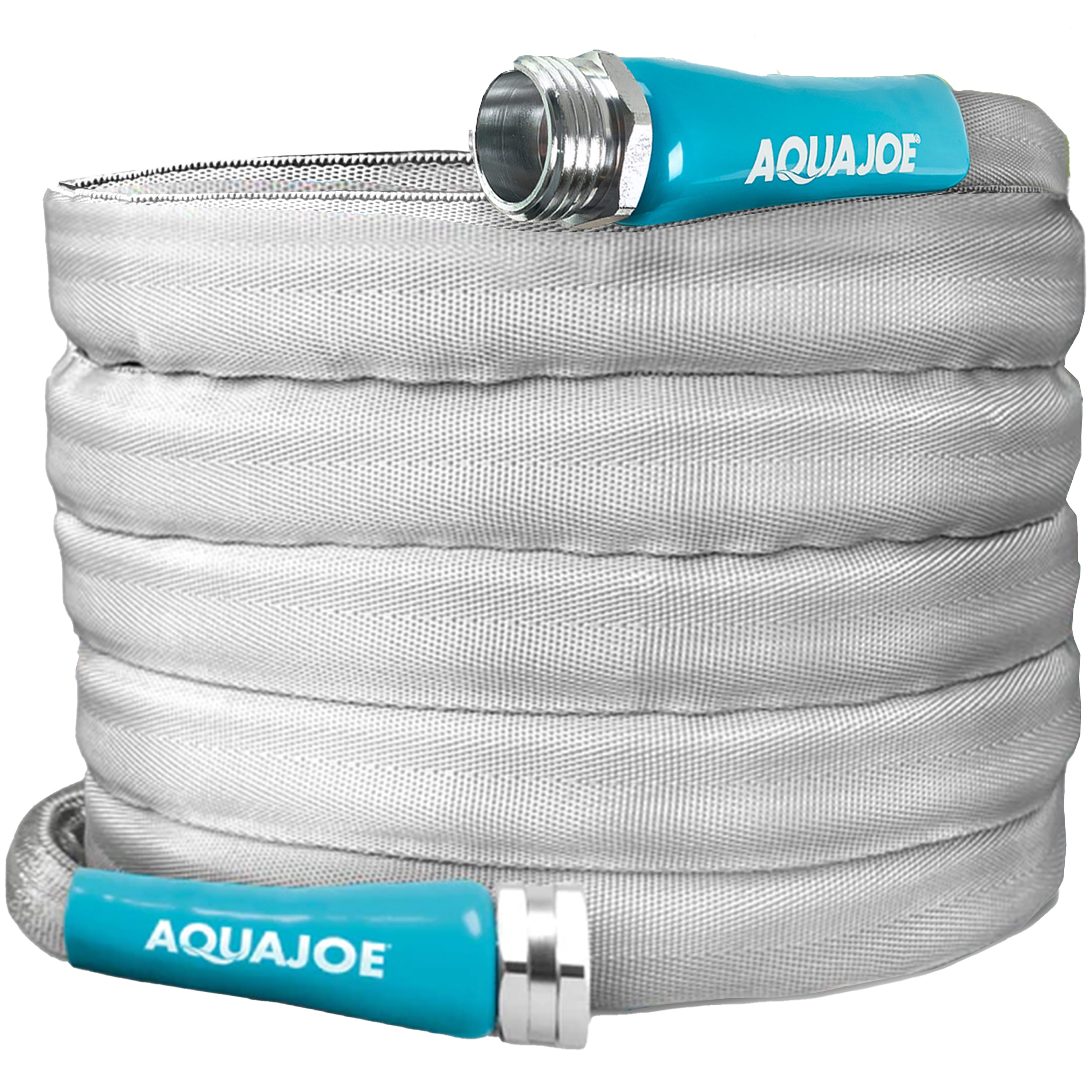 Say goodbye to tangled, kinked, and heavy hoses with the XTREME FIBERJACKET® GARDEN HOSE from AQUA JOE®. Constructed from a rugged, marine-grade FiberJacket surrounding a 5/8" flexible inner core, the rip- and abrasion-resistant fabric is safe on delicate and painted surfaces - no more scratching, scuffing, or snagging! The innovative, dual-layer design is crush-proof and built to withstand the toughest treatment, all while maintaining flexibility down to 35° Fahrenheit. Plus, AQUA JOE is weather- and mildew- resistant and dries quickly, so you'll never have to handle a heavy, hot, grimy, or slimy hose again. Equipped with durable metal fittings for a solid, leak-proof connection, AQUA JOE is kink-, twist-, and tangle-resistant for uninterrupted flow when watering your yard or garden. AQUA JOE XTREME features sturdy, yet flexible, grips for maximum comfort during use. Plus, AQUA JOE is up to 50% lighter than conventional hoses, provides maximum performance, and coils easily for compact storage. AQUA JOE comes in a variety of convenient hose lengths (choose from 25', 50', or 100' size options) to accommodate multiple watering tasks around your home, yard, garden, boat dock, or garage. Additional Aqua Joe watering accessories are available to purchase separately.