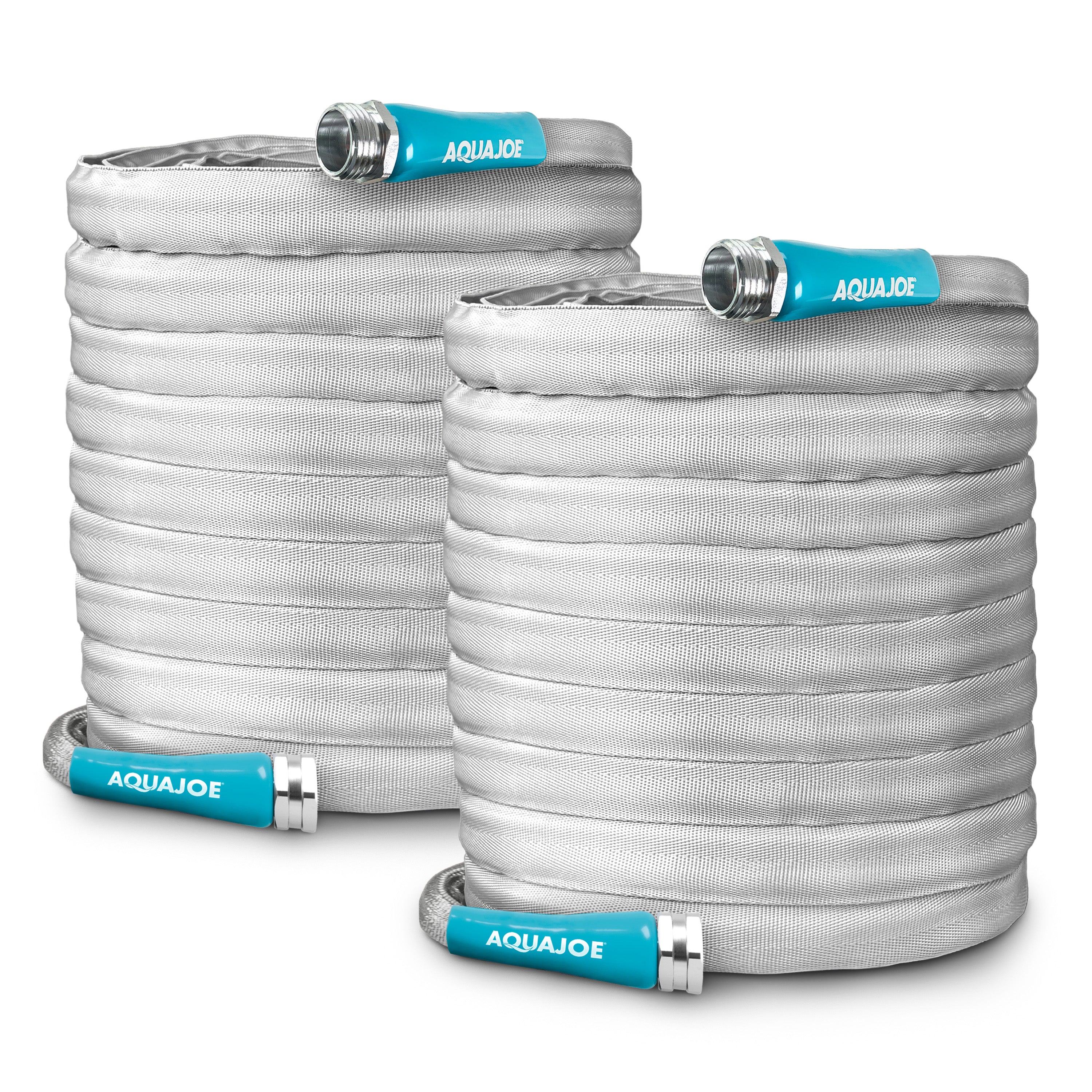 Aqua Joe Xtreme Fiberjacket Garden Hose | 100-Foot | 2-Pack | Metal Fittings