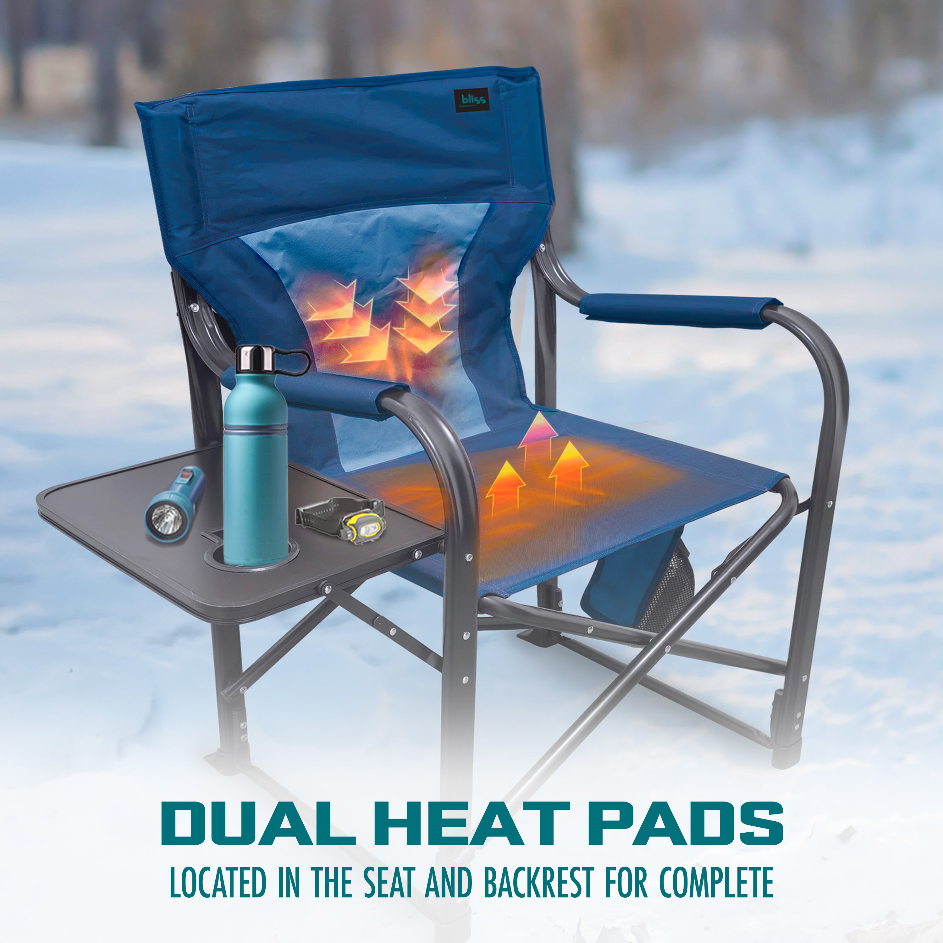 Bliss Hammocks BHC-24VH-BLU 24V Heated Directors Seat | 21-in Wide | 3 Temp Settings | 2.0-Ah Battery + Charger