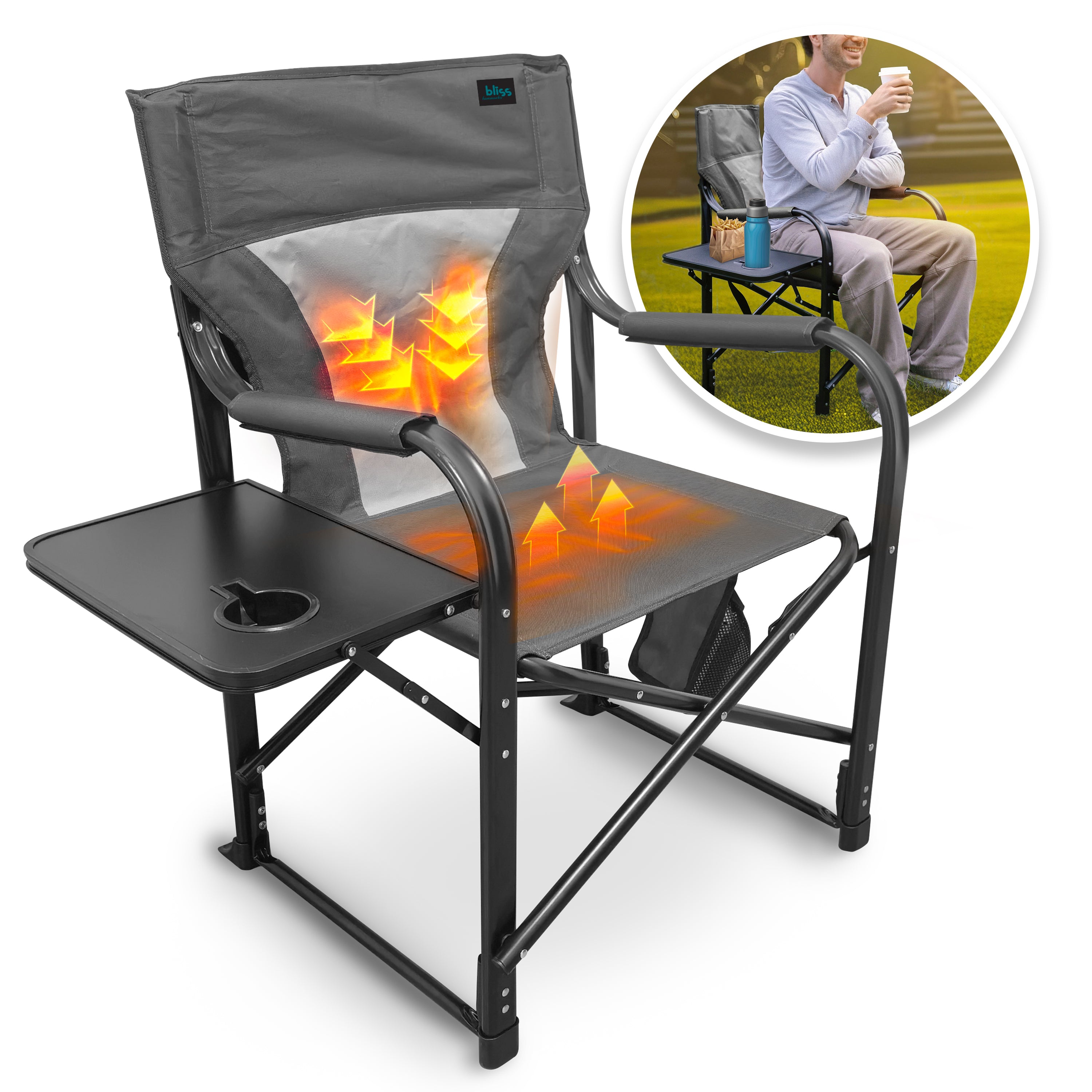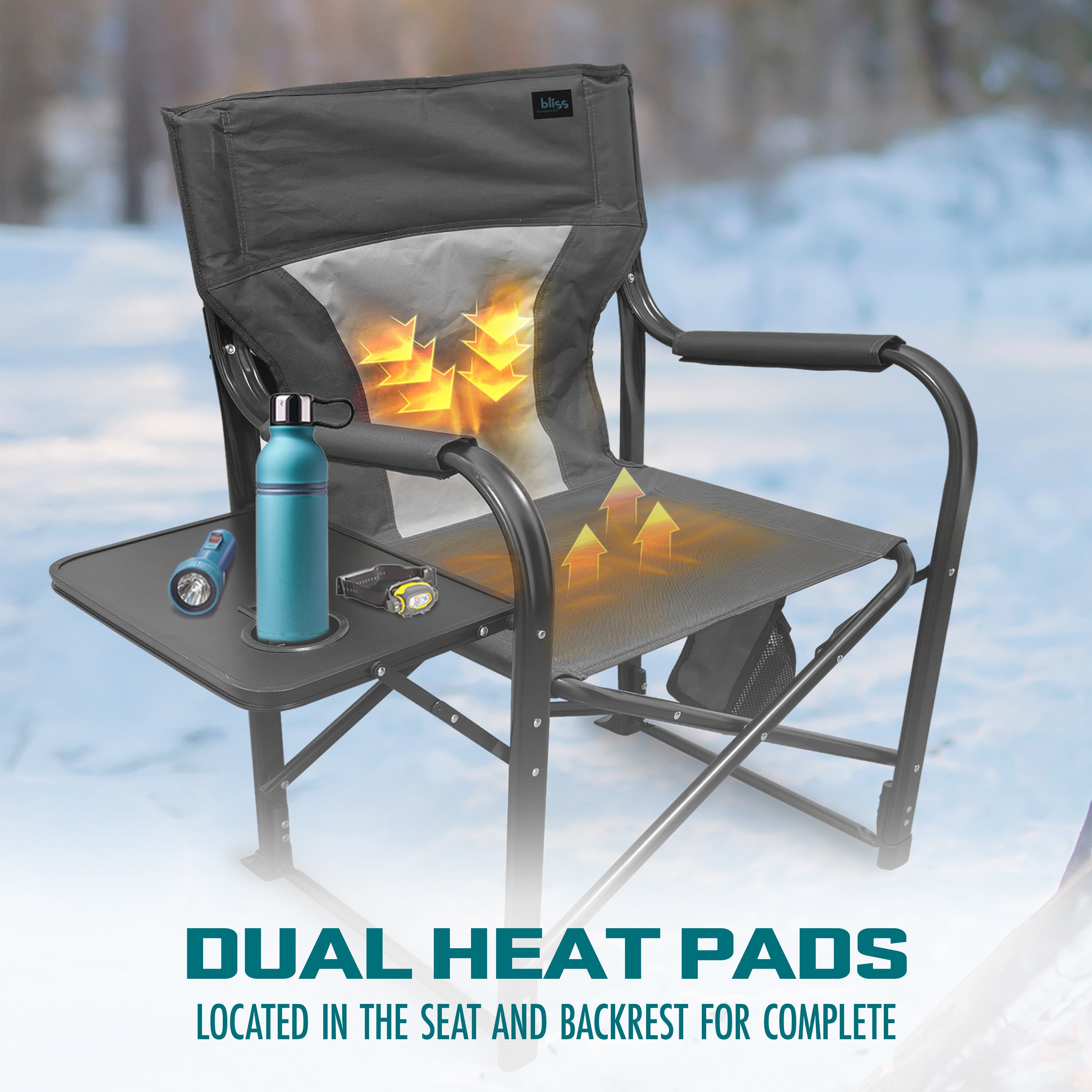 Bliss Hammocks BHC-24VH-GRY 24-Volt Heated Directors Seat | 21-in Wide | 3 Temp Settings | 2.0-Ah Battery + Charger