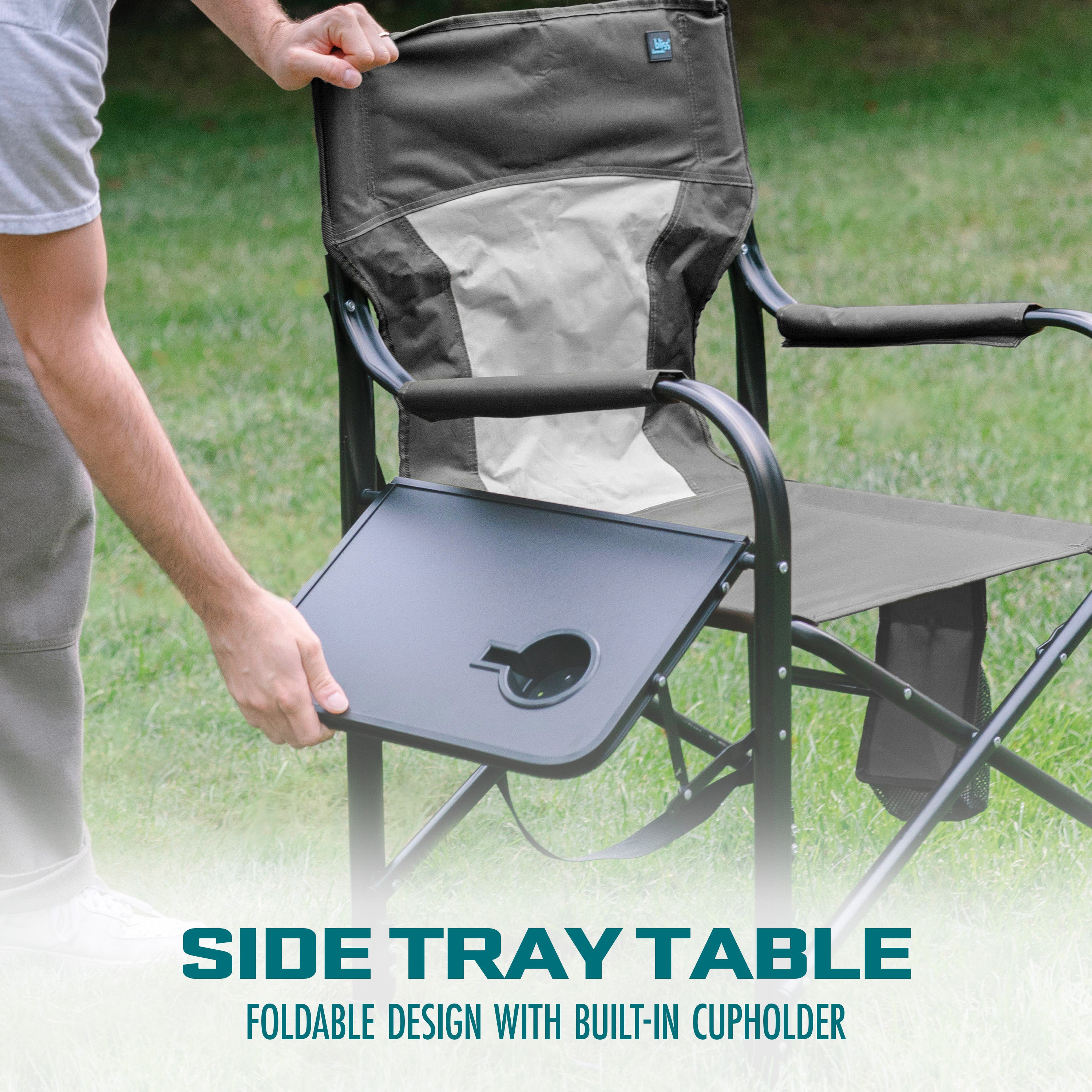 - CONVENIENT SIDE TRAY TABLE: Foldaway design with built-in cupholder for drinks and snacks