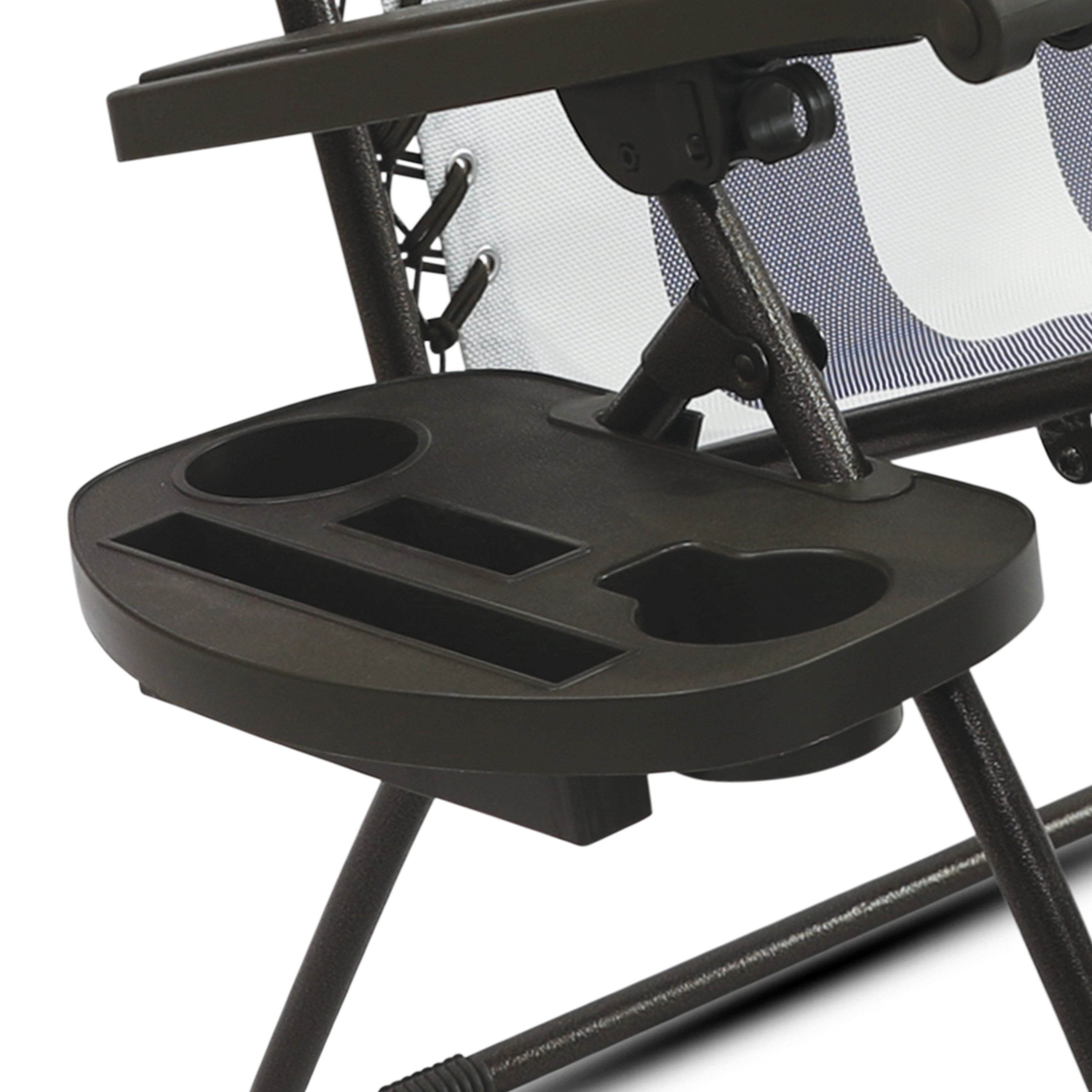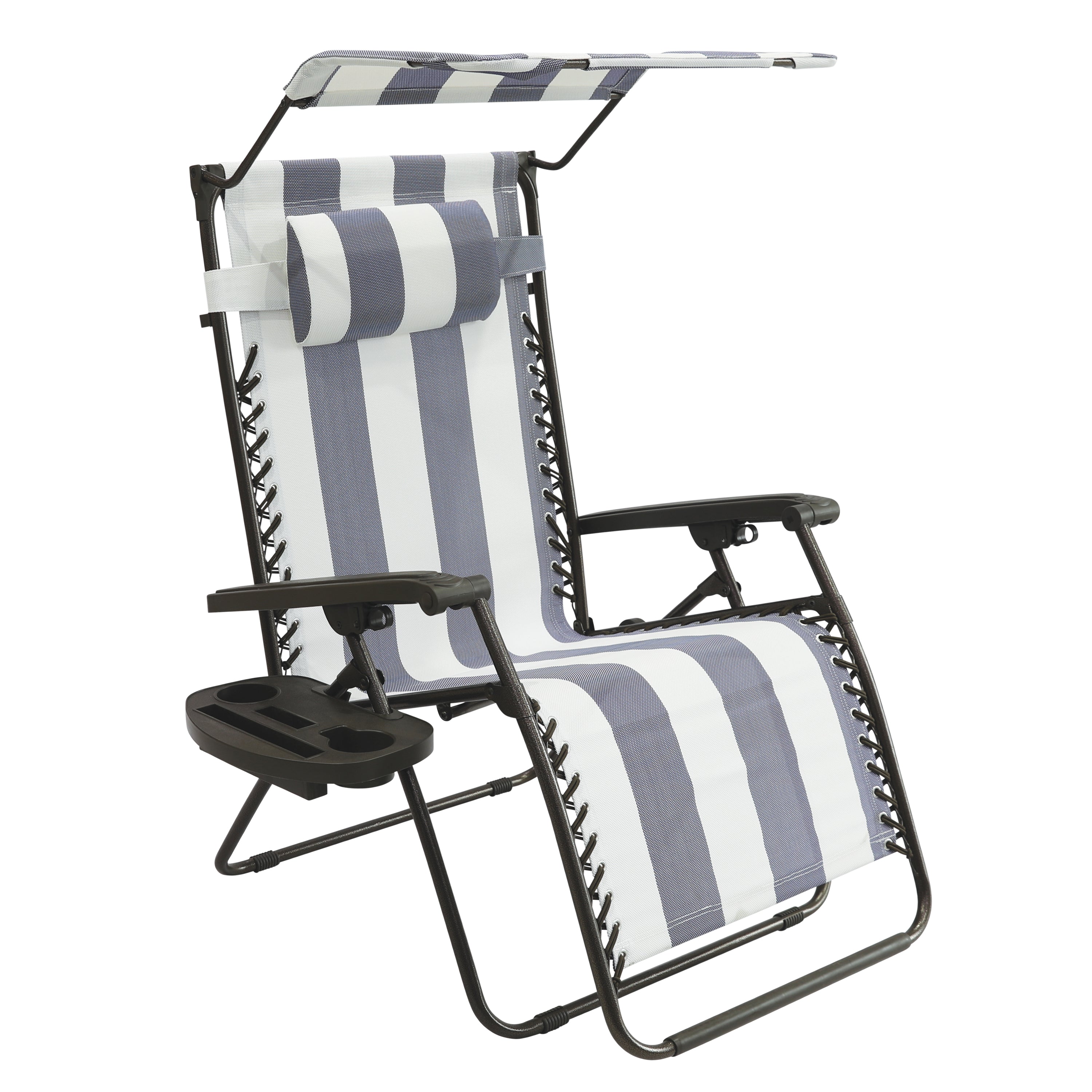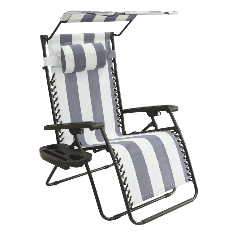 Bliss Hammocks GFC-032-BS-H Gravity Free Chair W/ Canopy, Drink Tray, & Pillow | 32-in. Wide XL | Weather & Rust Resistant | 360 Lb. Capacity (Blue Stripe)