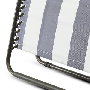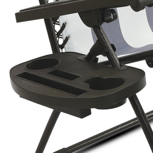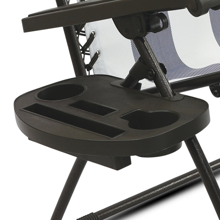 With the XL Bliss Hammocks Gravity Free Recliner, the stress will just float away as you recline back into any desired position! This chair is designed to put your body into the most natural position needed for rest and increased blood circulation when fully reclined. It's designed with "zero gravity" in mind and extra width for comfort so when fully reclined, your feet are aligned with the heart thereby achieving a neutral posture and ideal alignment. The result is a weightless sensation and of course, complete relaxation! Features an adjustable canopy/ sun-shade that blocks over 90% of UVA rays, and conveniently folds back and snaps into the back of the frame when not in use. Also comes with an adjustable pillow that can be used as a head rest or lumbar support and a side tray that holds 2 drinks, a cell phone & book or iPad. The seat bed is made of a PVC coated woven sling material that is strong, durable and doesn't absorb water, so can be dried instantly with a towel. It can also be easily cleaned with a wet cloth or hose. The sling material is attached to the frame with double bungee, to give you extra durability and allows the material to conform to your body when sitting in it; giving you ultimate comfort! The powder coated steel frame helps to prevent rusting which makes it ideal for use indoors and outdoor use and leaves you with a long- lasting quality product! It also features wider arm rests and and O lock mechanism which allows you to recline in any position, and lock it into place; then simply unlock to put the chair upright again. This XL model is 32" wide and has an increased weight capacity of 360 Lbs. The Bliss Gravity Free Chair folds practically flat for easy storage and portability... Find Your Bliss!