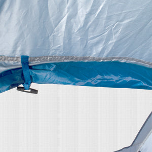 Enjoy the beach with UPF 50+ sun protection with our Pop-Up Beach Tent. It has 2 screened windows, storage pockets, and an interior hanging hook for mounting light-weight lamps and other accessories. It's made of durable, weather-resistant polyester material. Weighing in under 6 lbs makes this beach tent lightweight and easily portable with the included carry bag with a shoulder strap. It opens to 98 in x 47 in x 47 in and folds down to 30 in x 5.25 in x 5.25 in. Large enough to fit 2 adults with beach chairs. For added stability, it includes exterior pockets for sandbags, guy lines, and stakes.