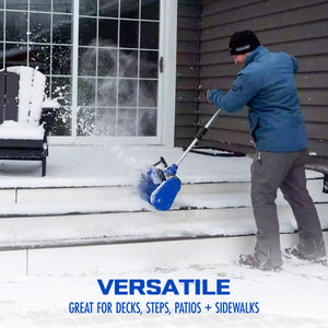 - CORDLESS CONVENIENCE: Ideal for quick, easy and cord-free snow pickups on decks, steps, patios, and sidewalks