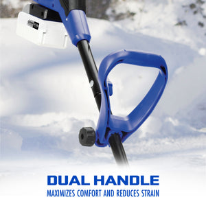 WHEN IT COMES TO SNOW, GO WITH JOE®. Introducing the ultimate cordless grab-n-go snow-busting tool: the 24-Volt* 13-Inch extended runtime cordless shovel from SNOW JOE. Combining innovation and functionality, SNOW JOE provides an easy, convenient, and cordless solution to get snow out of your way this winter. Powered by SNOW JOE’s exclusive IONMAX lithium-ion battery system, this high-performance SNOW JOE shovel includes a rechargeable 24-Volt 5.0Ah extended runtime battery to run stronger and longer to tackle the toughest snow removal jobs. The light choice is the right choice with SNOW JOE! Weighing only 14 lbs, SNOW JOE blasts through up to 300 lbs of snow per minute, and the dual-handle design eliminates the need to bend and strain for maximum user comfort. Equipped with a heavy-duty 2-blade paddle auger, SNOW JOE throws snow up to 20 feet away, clearing a 13-inch wide by 6-inch deep path with each pass. Plus, the durable scraper blade at the base of the unit lets you clear right to the ground without damaging your deck or pavement! When the job is done, SNOW JOE stores easily inside of a hall closet for quick, convenient access. GET EQUIPPED® this winter with the 24-Volt 13-Inch Extended Runtime Cordless Snow Shovel from SNOW JOE and leave back-breaking snow removal behind you.