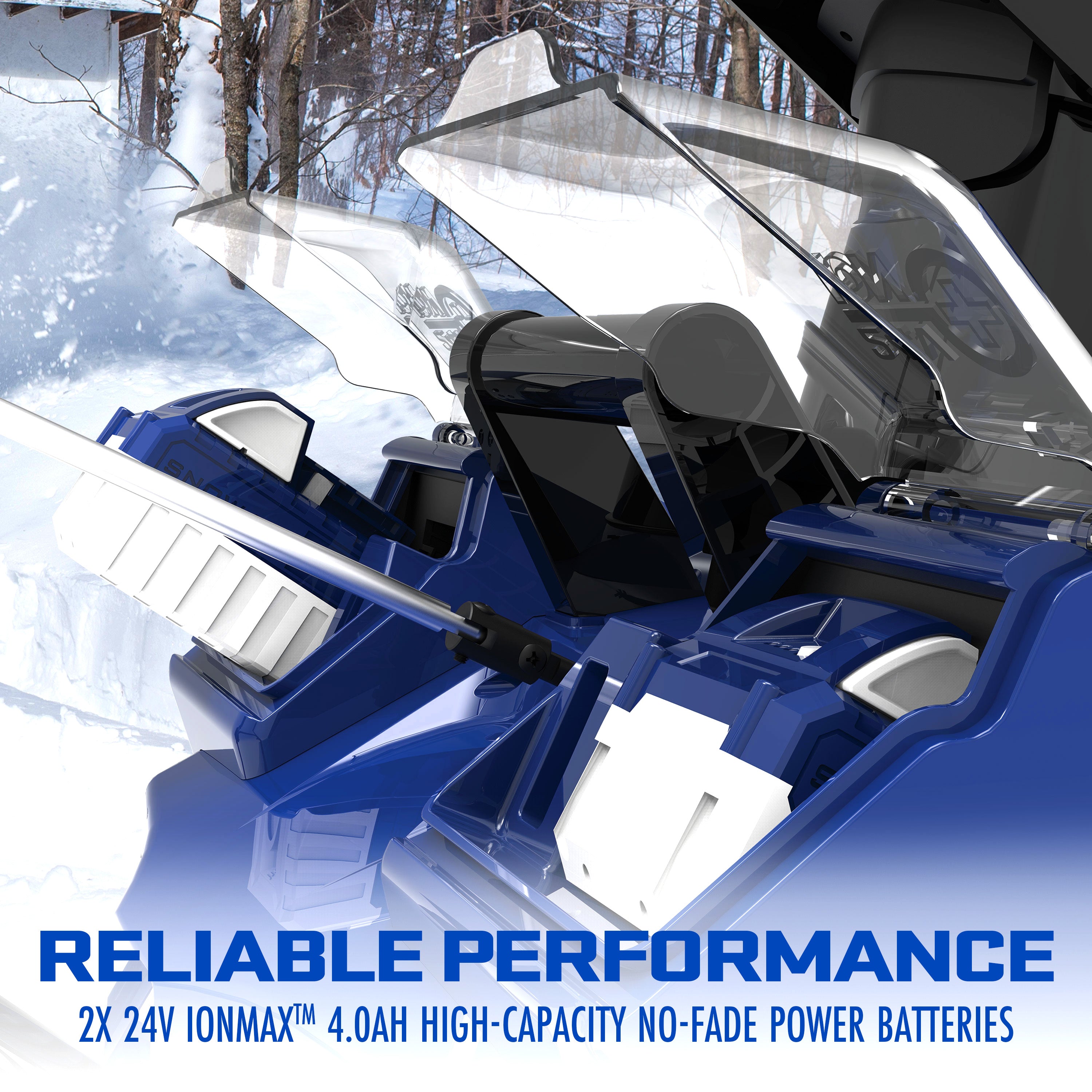 * Plowing capacity may vary based on snow conditions. Generates 48V max with two 24V lithium-ion batteries. Initial no-load voltage, per fully charged battery, peaks at 24 volts. Nominal voltage under typical load is 21.6 volts. Please note that 24V-X2-SB18-TV1 is NOT compatible with 24VBAT-XR8 and 24VBAT-XR12 batteries. 24V-X2-SB18-MAX is compatible with all other 24V IONMAX battery configurations.