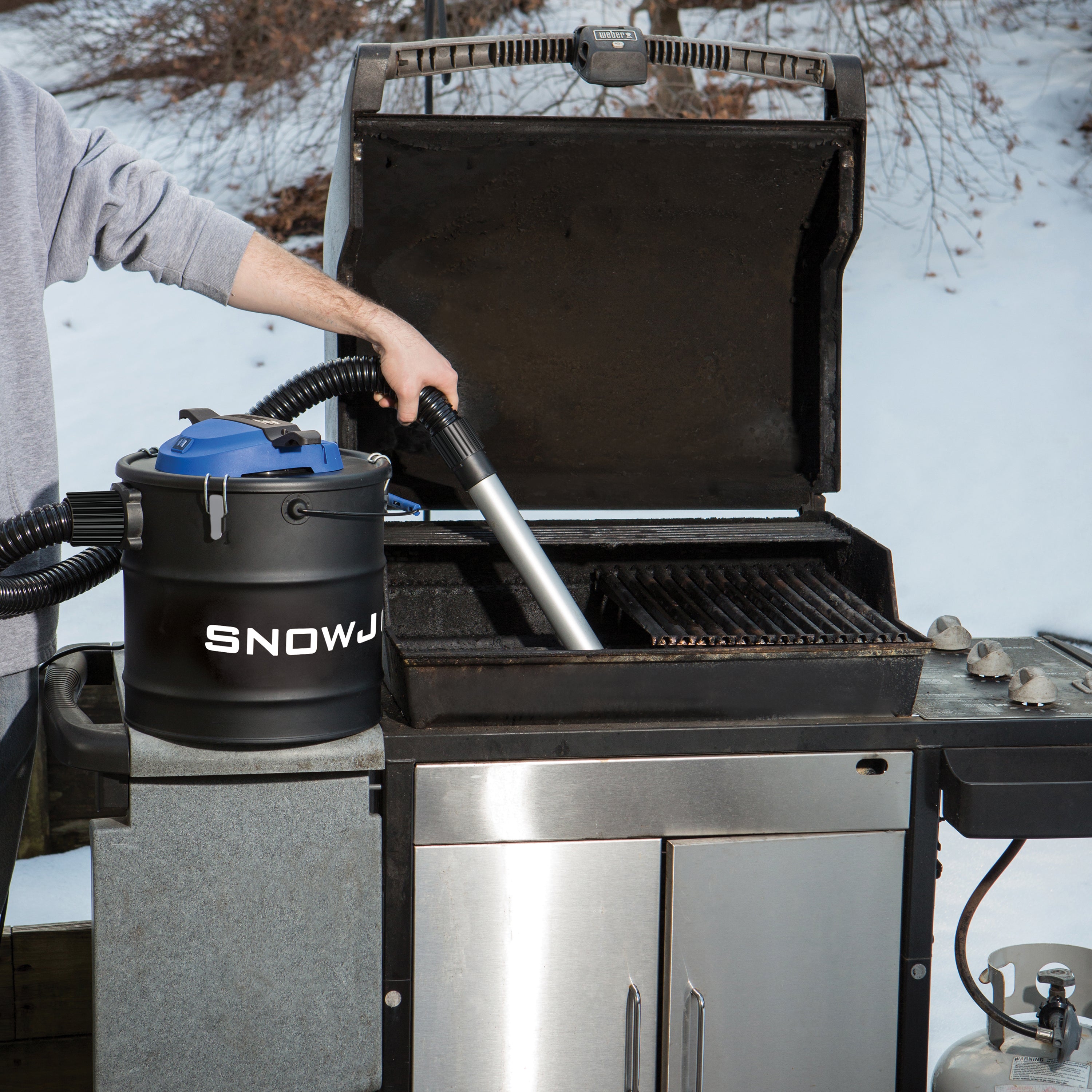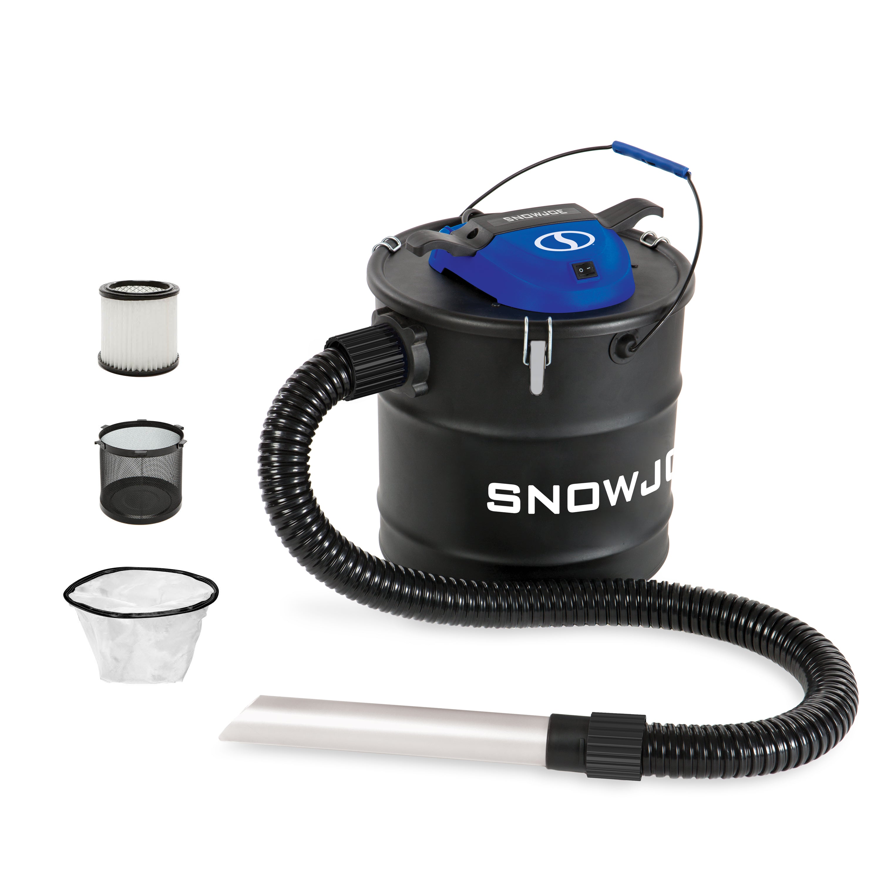 ASH IT OUT. The Snow Joe® ASHJ201 4.8-gallon Ash Vac is designed for cold ash pickup from wood stoves, pellet stoves, fireplaces, firepits, and BBQ grills. Equipped with a dual filtration system that employs both a coarse-dust pre-filter and a fine-dust pleated filter, the Ash Vac effectively traps dust particles during the ash cleaning process and prevents them from escaping into your breathing space. No more dusty mess around your home! Operation is simple: just insert the Ash Vac’s aluminum intake nozzle into your pile of cold ash, flip the switch, and watch its powerful 4-amp motor generate up to 500 W of suction power and 42.4 cubic feet per minute of air flow. The Ash Vac’s extra large metal canister stores up to 4.8 gallons of ashes, so you can finish your task without stopping to empty the container. Plus, it’s a self-contained, bag-free system, which allows for easy ash removal with a simple lift of the container lid. Other features include a safety stop switch to prevent the Ash Vac from operating without a properly fitted filter, a wire filter basket to protect the fine dust filter, an easy carry handle, an inspection window blockage indicator, and an onboard cord/hose organizer for convenient storage. Backed by a full 2-year warranty, the Ash Vac ASHJ201 is the reliable cleanup tool you’ll need to deal with any ash problem in a simple, clean and safe way.