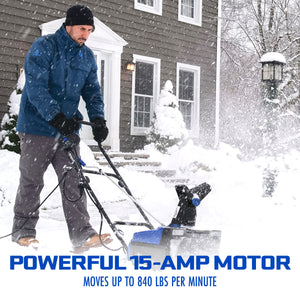 - POWERFUL PERFORMANCE: 15-amp electric motor moves up to 840 lbs of snow per minute