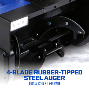 - WIDE CLEARING PATH: All-steel auger cuts a 22" wide by 13" deep path with every pass