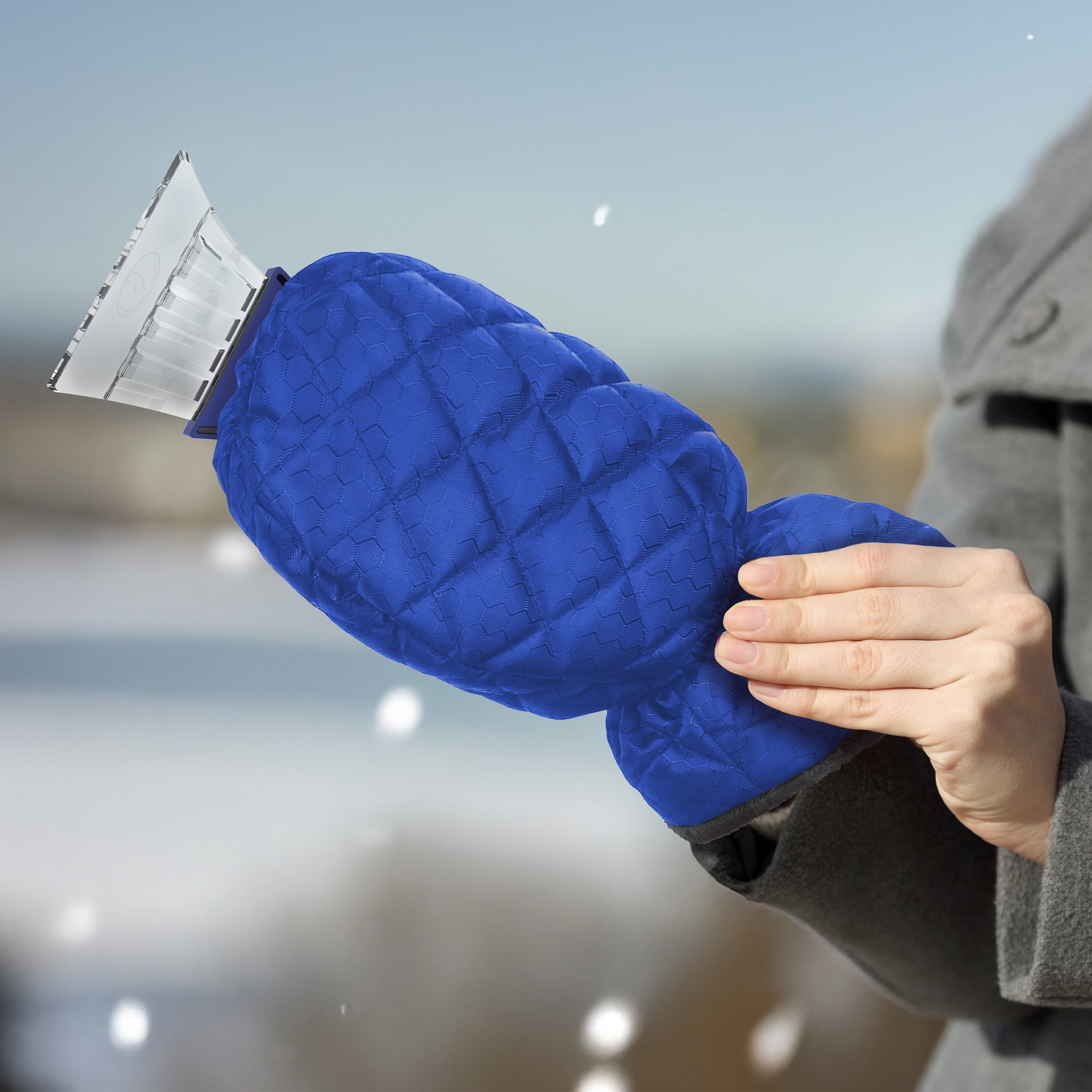 - BUILT-IN THERMO-PLASTIC POLYMER ICE SCRAPER with ergonomic handle and durable ridges for chopping ice; safe on glass