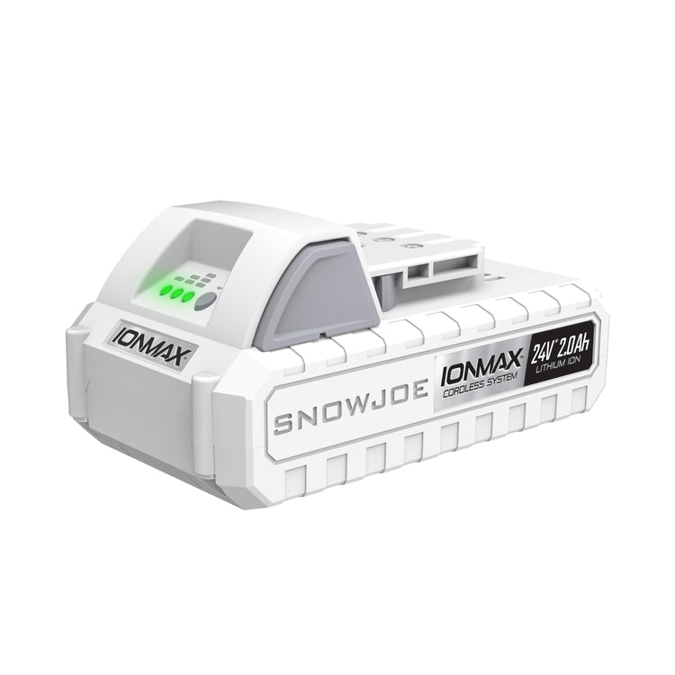 Power up. Power your cordless iON tools the eco-friendly way with the 24-volt* IONMAX 24VBAT-LTE lithium-ion battery. Compatible with all Snow Joe® + Sun Joe® 24V* IONMAX models, the 24VBAT-LTE features high capacity 2.0 Ah lithium-ion cells that deliver no-fade power for maximum job performance.