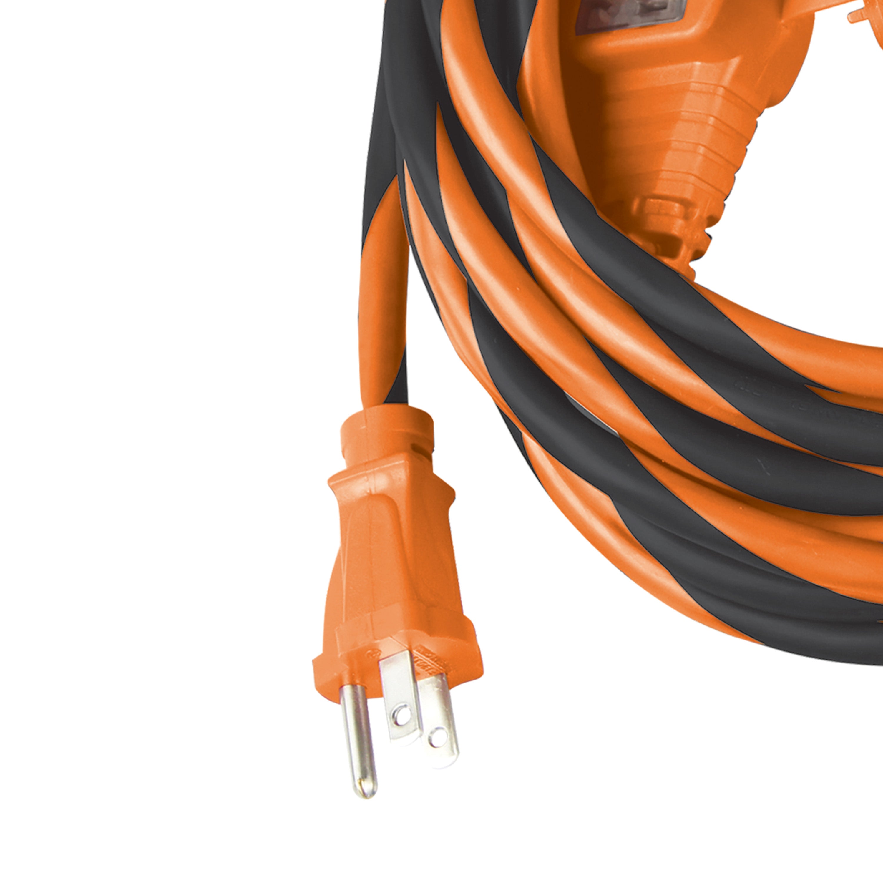 Snow Joe + Sun Joe PJEXT25MO-OB Indoor + Outdoor Extension Cord | 25-Foot | Cord Connect Adapter | Orange + Black Stripe