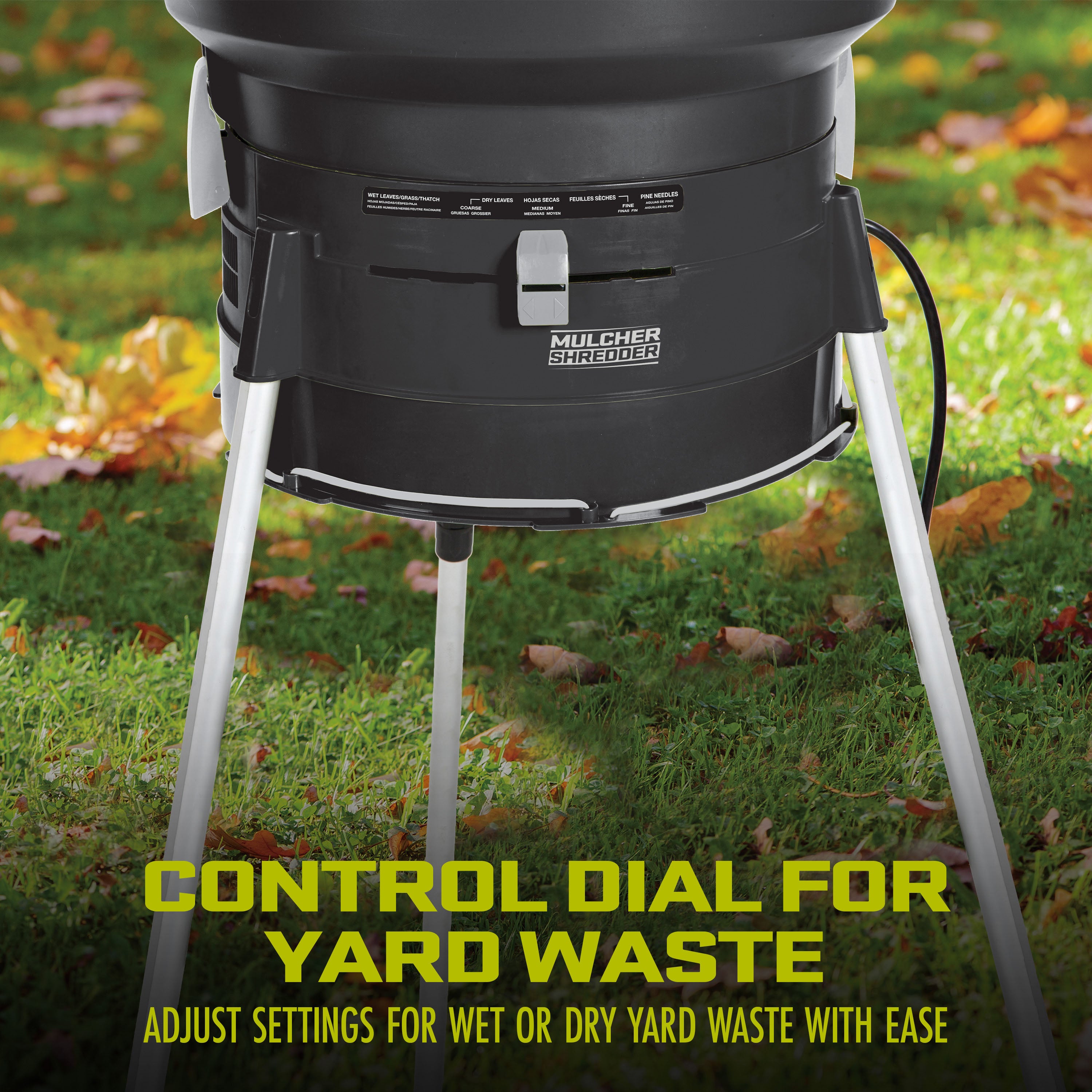 Shredding leaves into mulch is easy with the Sun Joe electric shredder. Simply dump handfuls of leaves into the easy-to-load 19-inch hopper, and watch its powerful 13-amp motor and bladeless mulching system make quick work of your yard waste. With its 12-inch cutting diameter and heavy-duty trimmer line, the Shredder Joe electric leaf mulcher safely and efficiently mulches up to 55 gallons of leaves per minute! Featuring Smart Shred technology, Sun Joe employs an advanced motor cooling system that diverts the air from the shredded leaves to significantly reduce the amount of dust generated during use. Unique to Sun Joe is an easy-to-read control dial with adjustable settings for wet or dry yard waste, including leaves, thatch, grass clippings and even pine needles.