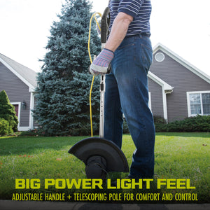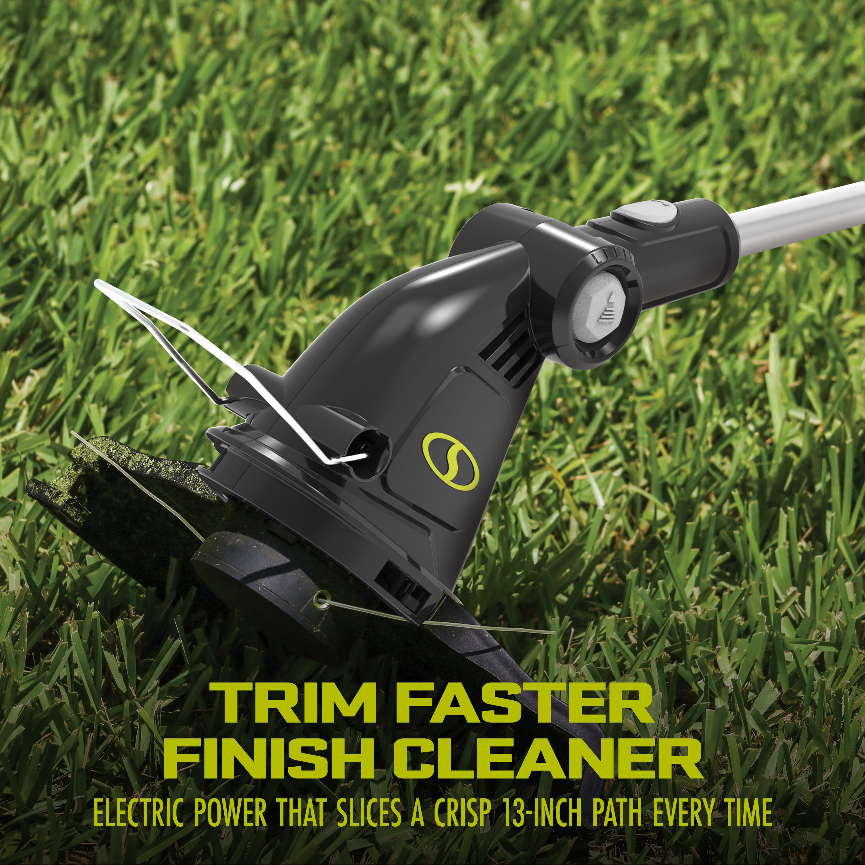 TRIM DOWN AND SHAPE UP YOUR YARD - FAST! For a fast, easy and effective way to keep your lawn looking its best, try the Sun Joe® TRJ13STE Electric Trimmer Edger. Sun Joe® starts instantly and reliably with the push of a button. And because it’s electric, there’s never a need to mess with gas, oil or tune-ups, or worry about maintenance and toxic emissions. The powerful 4-amp motor cuts a crisp, 13-inch swatch, making quick work of overgrown grass and heavy weeds. Weighing just 5 lbs, Sun Joe® is easy to maneuver in tight spaces, and the rotating head quickly converts from trimming to edging with four degrees of cutting, combining the convenience of two tools in one dynamic device. Sun Joe's® convenient auto-feed feature ensures you’ll always have the right length of line to continue cutting without interruption. Sun Joe® is ETL approved and backed by a full 2 year warranty for performance and reliability you can count on, season after season.