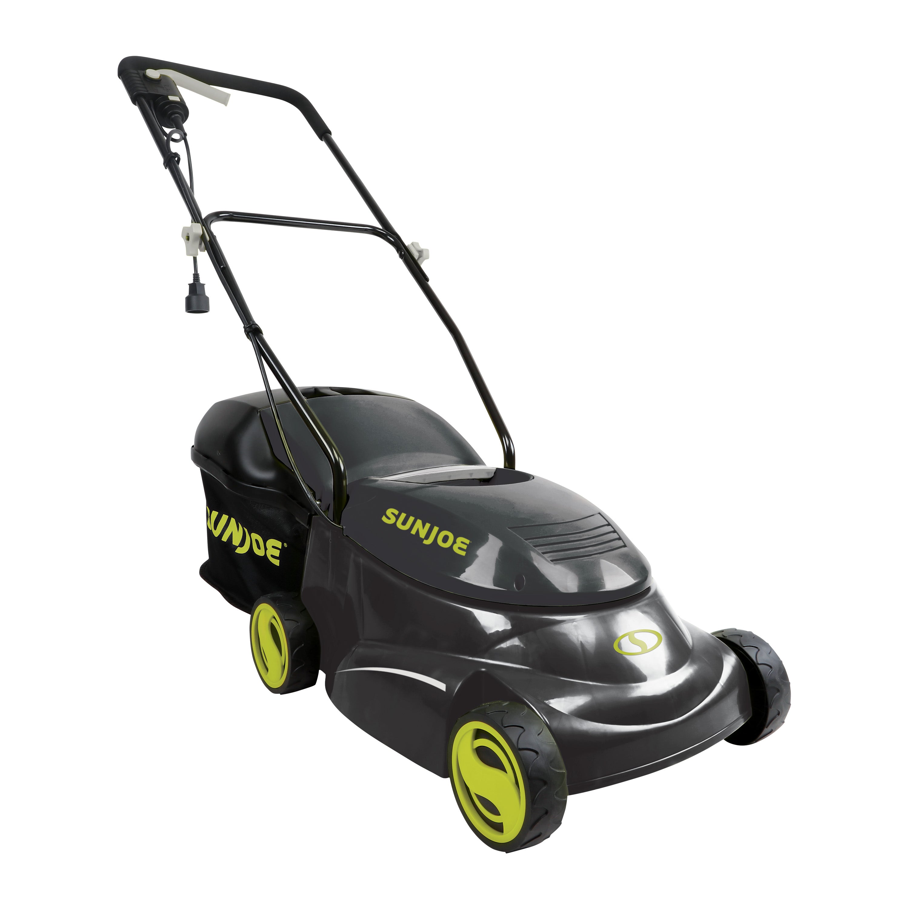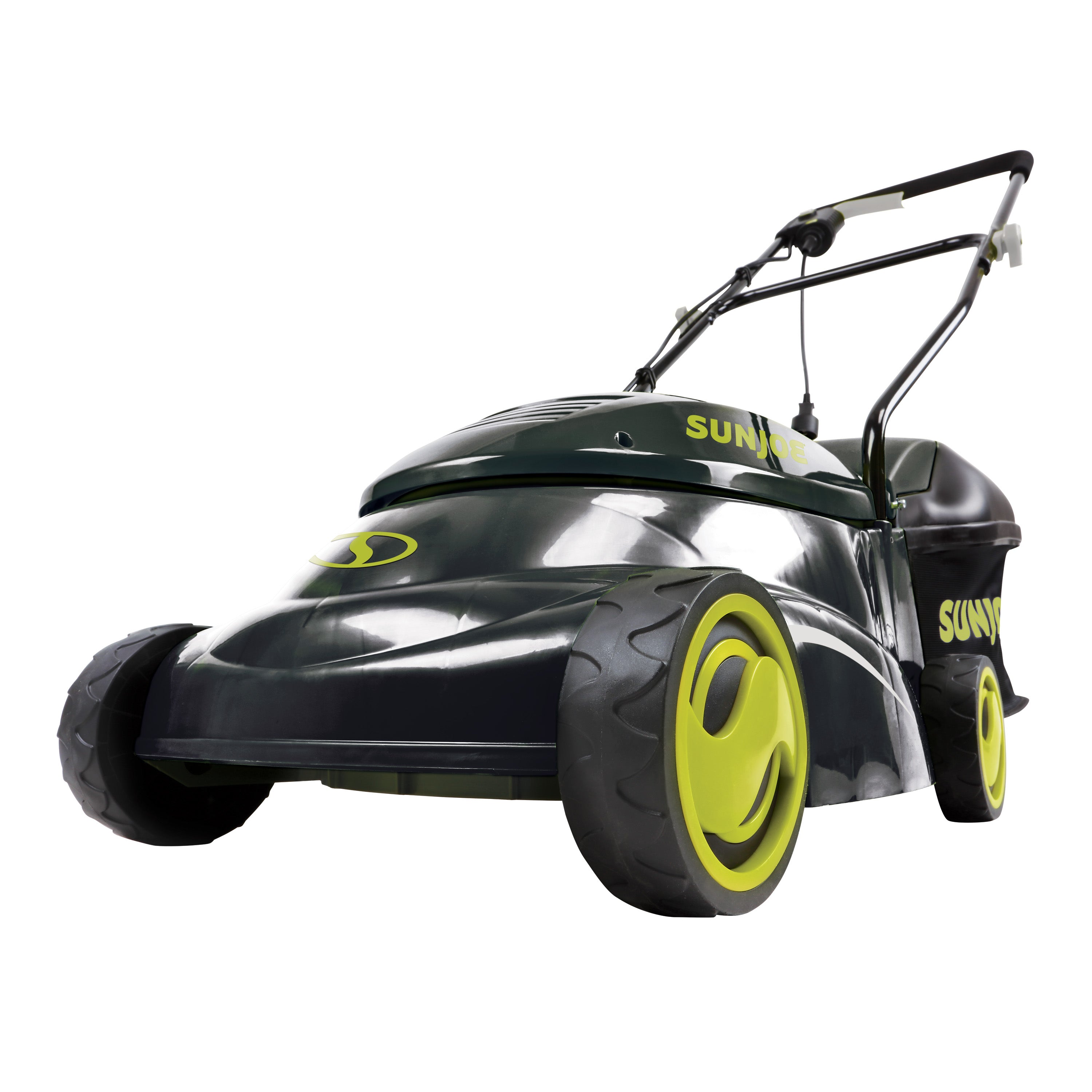 GREAT IN TIGHT SPACES! Responding to the need for an easy-to-use electric mower for smaller lawns, Sun Joe® developed the MJ401E. Compact and lightweight, the Sun Joe MJ401E is a lean, mean and green mowing machine that gets your yard chore done without polluting the atmosphere with toxic carbon emissions. Sun Joe starts instantly with the simple push of a button and its rugged all-terrain wheels make it easy to maneuver in tight spaces. Equipped with a durable steel blade, Sun Joe cuts a 14-inch wide swath with each pass. Tailor the grass cutting height with its 3-position manual height control, which adjusts from 1.18 inches to 2.52 inches. Its 10.6-gallon hard-top rear bag conveniently collects grass clippings and detaches easily for quick disposal. A collapsible handle allows for easy and compact storage when not in use. ETL-approved; Full 2-year warranty.
