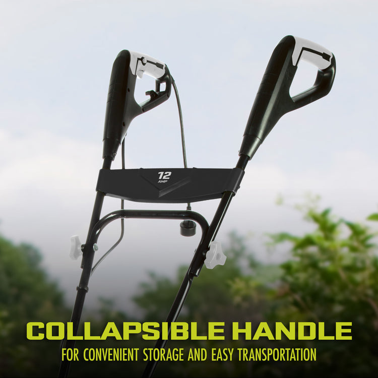 THE DIRTY LITTLE SECRET OF GREAT GARDENS. Dig it - and experience the one tiller that’s truly up to the task! Introducing a greener, cleaner way to get dirty with the Sun Joe® TJ603E Electric Tiller + Cultivator. A powerful 12-amp motor quickly pulverizes dirt, effortlessly slicing through the soil at 340 RPM, ensuring maximum aeration and perfectly preparing the seedbed for planting. Cultivate an area 16-inches wide and up to 8-inches deep in seconds. Control weeds where needed - Sun Joe® tames the toughest yard and garden tasks with more comfort and less strain. Rear wheels make it easy to maneuver wherever it’s needed - and its collapsible handle makes it a cinch to store when it’s not.