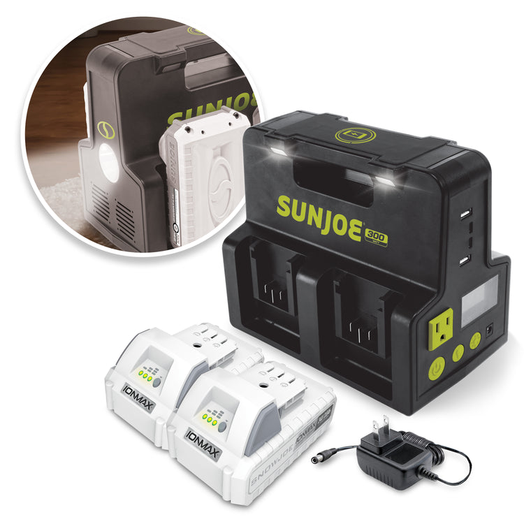 Sun Joe 24V-300WI-2AMP-KIT 24-Volt Cordless Powered Inverter Generator Power Station | W/ 2 x 2.0-Ah Batteries