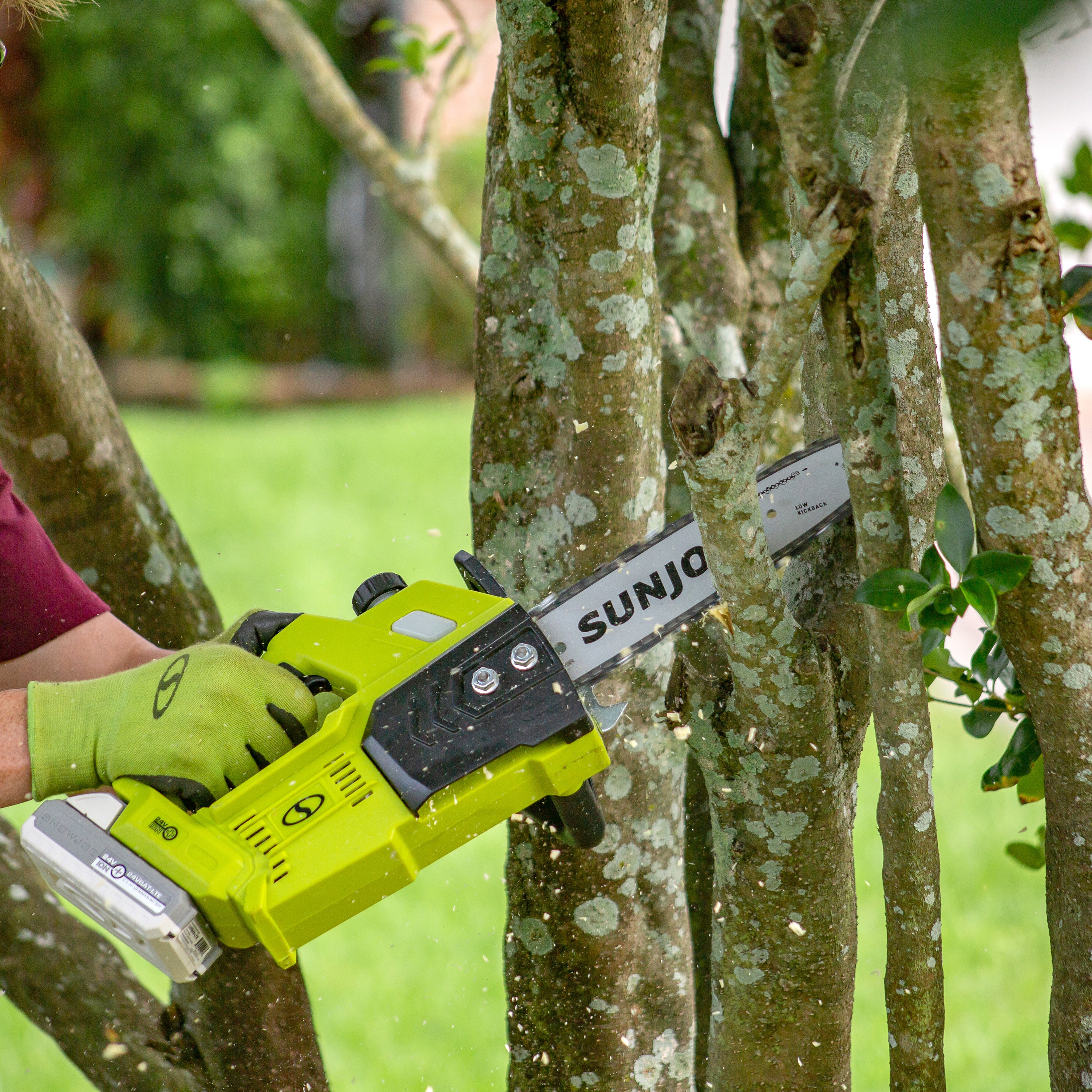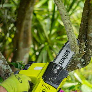 So, cut your tree trimming tasks down to size — and Go With Joe®. The 24V-10CS 24-Volt*, 10-Inch Cordless Chain Saw from SUN JOE®. GET EQUIPPED®.