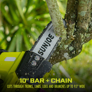 Sun Joe 24V-10CS 24-Volt* IONMAX Cordless Chain Saw Kit | 10-inch | W/ 4.0-Ah Battery + Charger