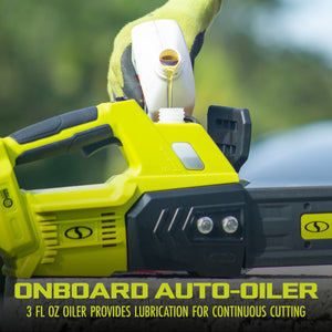- Onboard auto-oiler keeps the bar and chain lubricated for continuous cutting