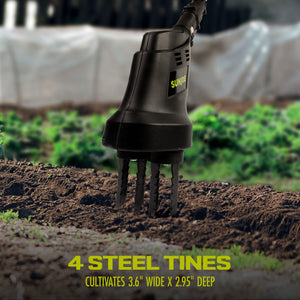 - PRECISION CULTIVATING – 4-tine steel blades dig up to 3.6 inches wide and 2.95 inches deep, perfect for flower beds and small garden spaces.