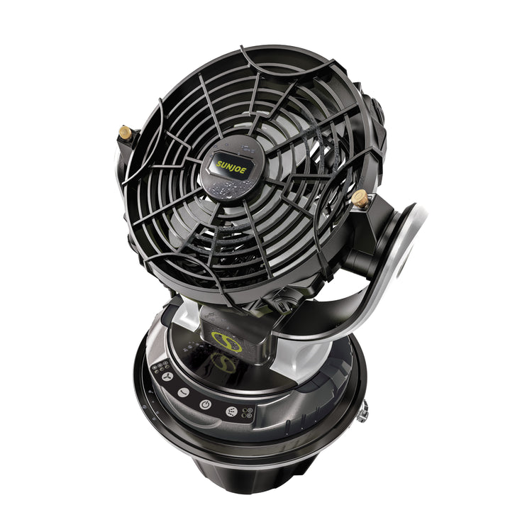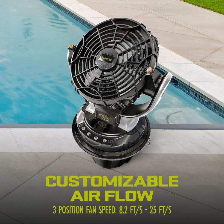 KEEP IT COOL! Pump up the comfort with the 24 Volt* Cordless Misting Fan by SUN JOE®. Cool off anytime, anywhere! Powered by the exclusive IONMAX lithium-ion battery system — anywhere water or power is at a premium. Sun Joe is portable and quiet, ideal for indoor or outdoor cooling at the worksite, sporting events, campsite + tailgating, gardening, patio, and more! The onboard bucket holds up to 6 gallons of any fresh water source, while the 3-speed fan provides a cool mist. Adjust the spray angle with the 70° fan rotation + 160° pivoting head, and cool down up to 60 sq ft! So, when comfort is a must — Go With Joe® and grab the 24V-MSTFAN-LTE Cordless Misting Fan from Sun Joe®. GET EQUIPPED®.