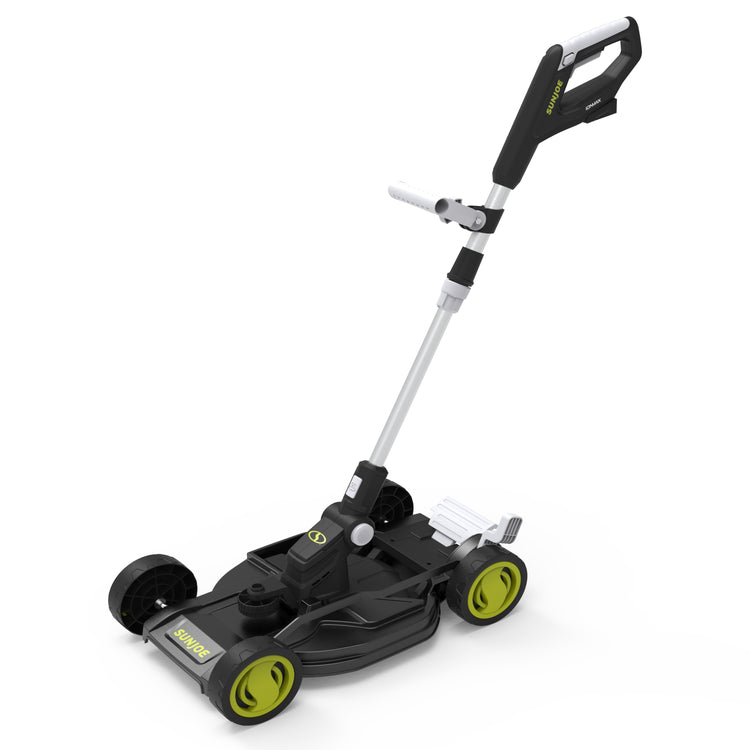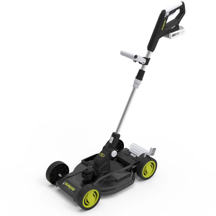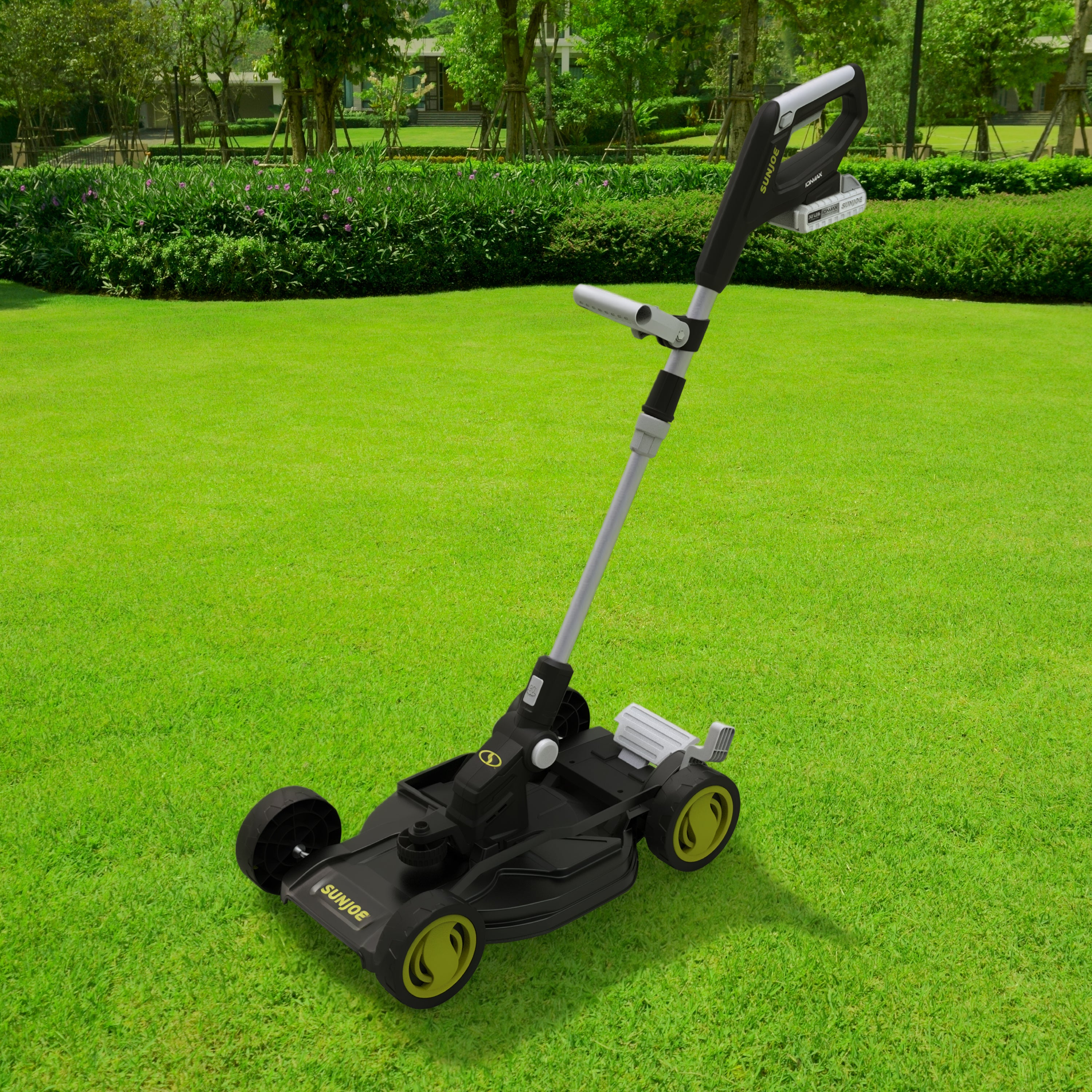 GO WITH JOE! Tackle your lawn with the power and precision of the Sun Joe 24V-MTE-LTE, the ultimate 3-in-1 cordless lawn care solution that effortlessly transforms from a mower to a string trimmer to an edger in seconds! Designed for small to medium yards, this lightweight and versatile tool delivers cordless convenience with a powerful 400W motor and high-performance 24V 2.0-Ah lithium-ion battery, giving you the freedom to cut, trim, and edge without the hassle of gas, cords, or emissions.