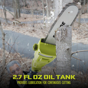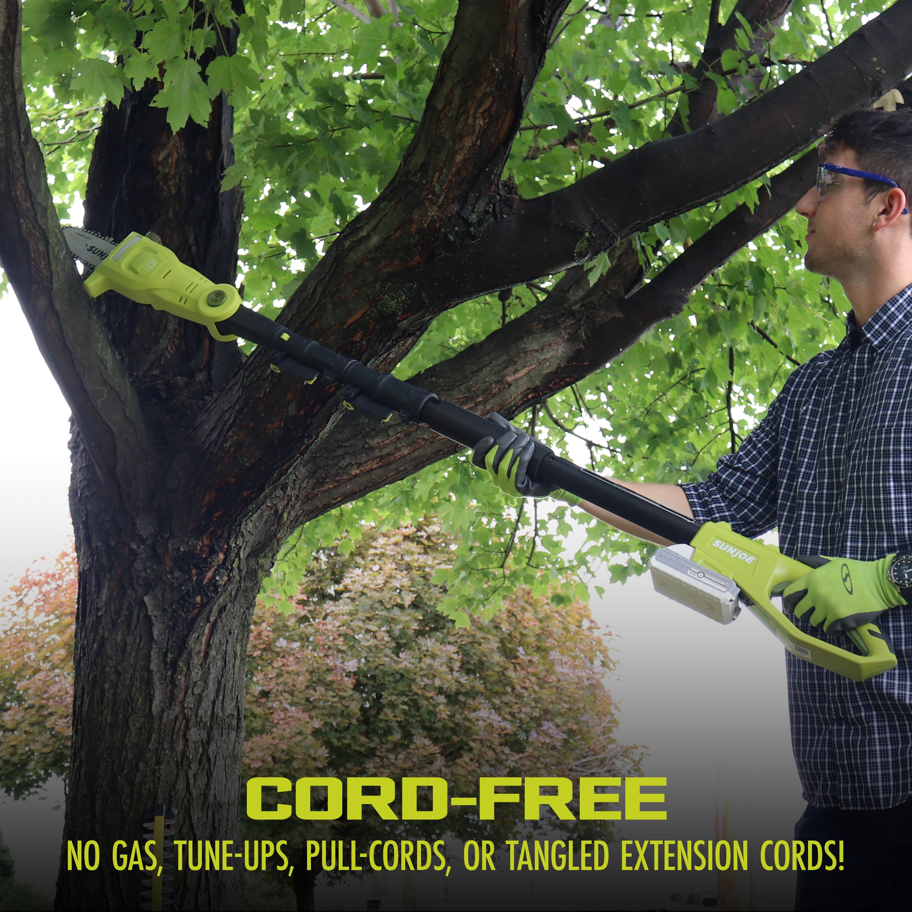 So, when you’re in the thick of things, cut your yard chores down to size and Go With Joe®: the 24V-PS8-CT 24-Volt 8-Inch Cordless Pole Chain Saw from SUN JOE.