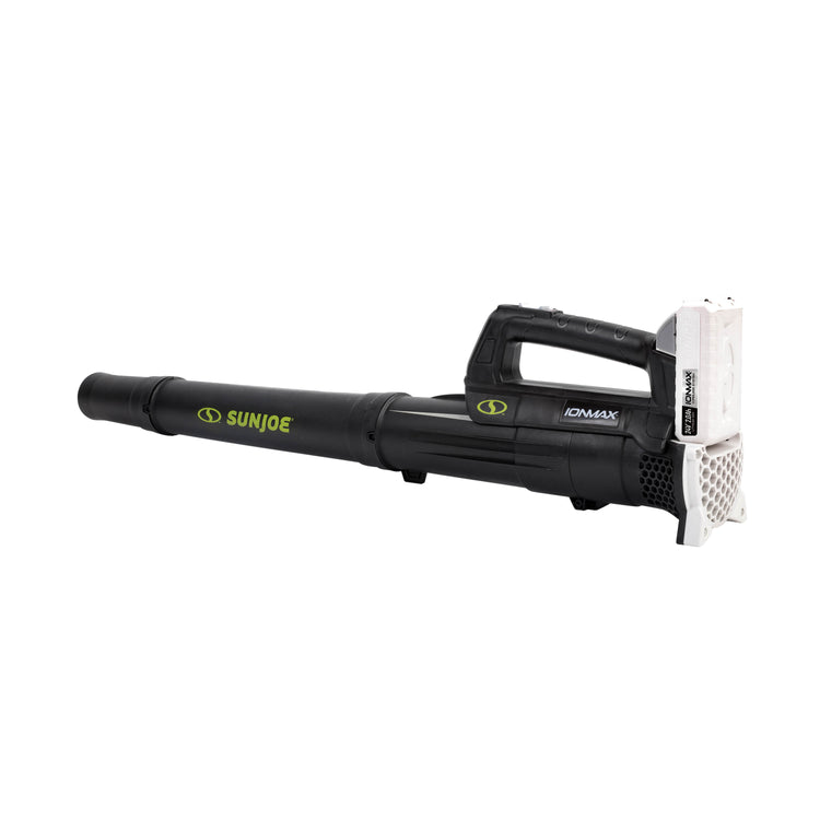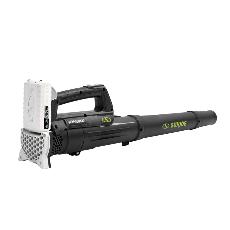 MAKE CLEANUP A BREEZE! Say goodbye to blisters and give your back a break – tiring lawn and leaf cleanups are a thing of the past with 24V-TB 24-Volt* Cordless Compact Turbine Jet Blower from SUN JOE. Only SUN JOE is powered by iON , the revolutionary 24V* lithium-ion battery system with a world of possibilities. Cut The Cord® and go beyond the porch and patio, or anywhere power is at a premium with rechargeable runtime with no-fade power + performance, and cord-free, gas-free, rechargeable power! Quickly sweep the garage, garden, deck, driveway and more with the perfectly portable cordless convenience of SUN JOE. Like an aircraft, 24V-TB’s turbine fan propels the windspeed up to 100 mph and 280 cubic feet per minute to make yardwork a breeze and leave your yard spotless. With a sleek, compact, aerodynamic design to maximize airflow and optimize storage, SUN JOE’s 350 Watt motor provides all the power you need to quickly clear away grass clippings, leaves, dirt and debris, or even light snow! So, when life gives you leaves, make cleanup a breeze. The 24V-TB 24-Volt* Cordless Compact Turbine Jet Blower from SUN JOE®. GET EQUIPPED®.
