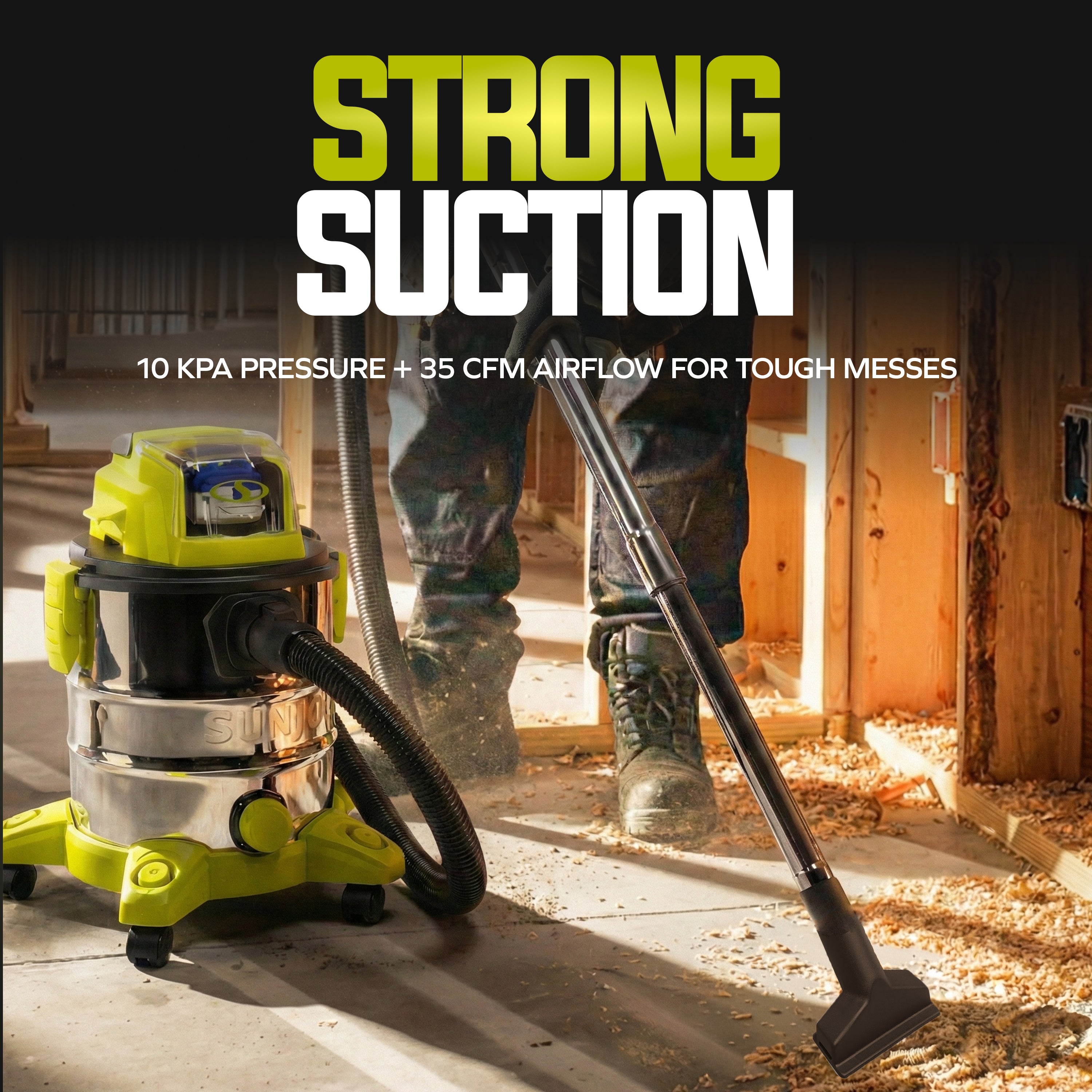 - STRONG SUCTION: Max vacuum pressure of 10 kPa and 35 CFM airflow handles tough messes