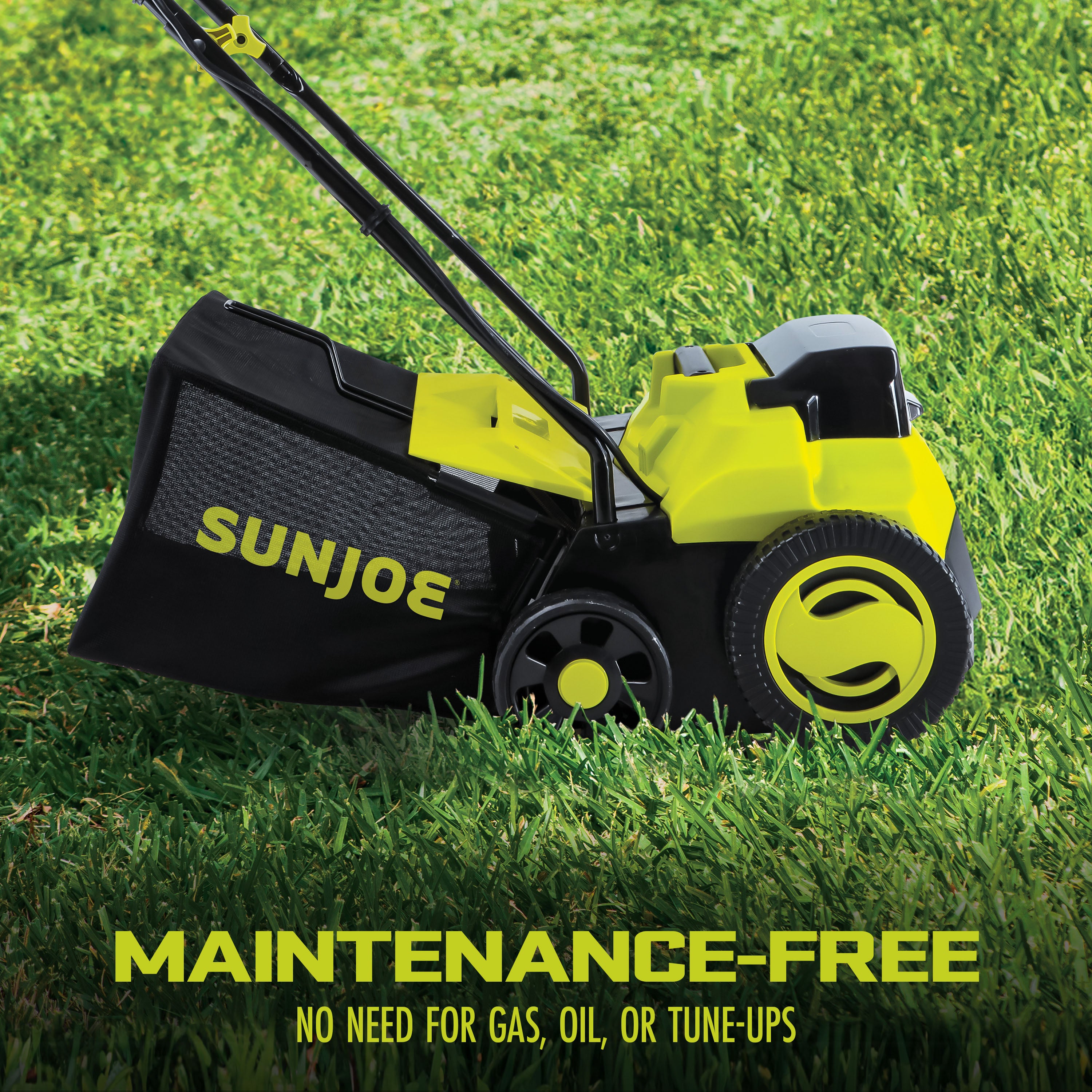 LET YOUR LAWN BREATHE. Clear out thick thatch build-up and moss deposits with the 48V Cordless Scarifier + Dethatcher from Sun Joe. Thatch is a dense mat of roots, stems and grass clippings that accumulates on lawns over time, blocking the flow of water, oxygen and vital nutrients. This can cause dry, brown patches to pop up around your yard and stunt healthy growth.