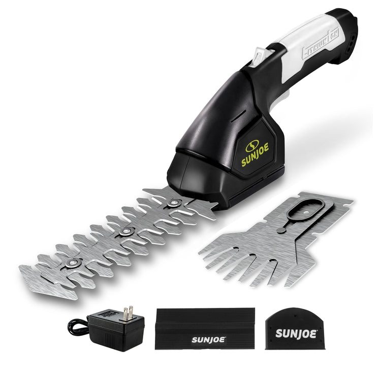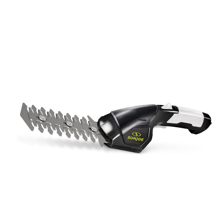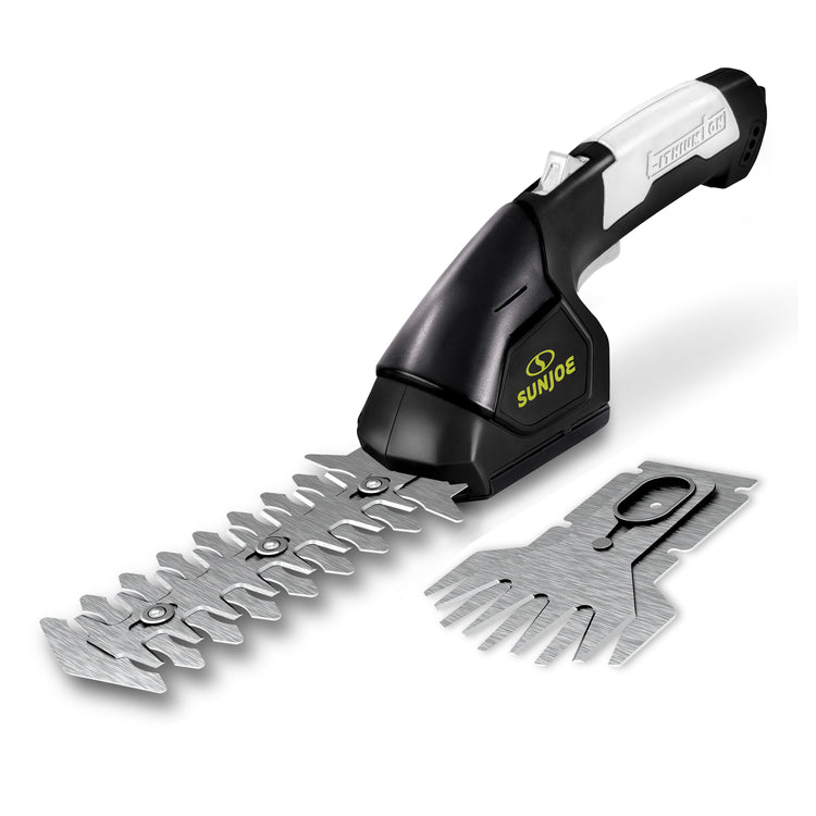 HEDGE YOUR BET. Perfect for post-mowing touch ups in tight spaces, the Sun Joe® HJ604C 2-in-1 grass shear hedger boasts a 7.2-volt long-life lithium-ion battery for hassle-free, cordless operation. Power up instantly with the push of a button and start shearing or shrubbing with cord-free convenience. Rechargeable 1.5-Ah battery power makes Hedger Joe eco-friendly and maintenance-free, so you’ll be able to get the job done without having to worry about gas, oil, costly seasonal tune-ups, or toxic hydrocarbon emissions.