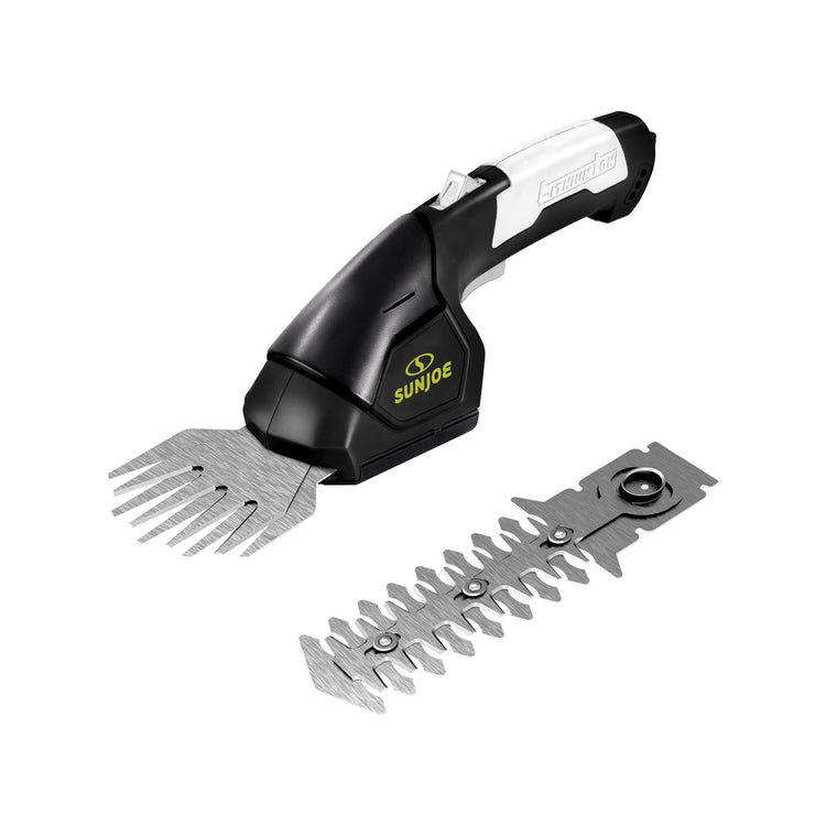 - Interchangeable 4-inch shear blade and 6-inch hedge trimmer blade tackle multiple grooming tasks