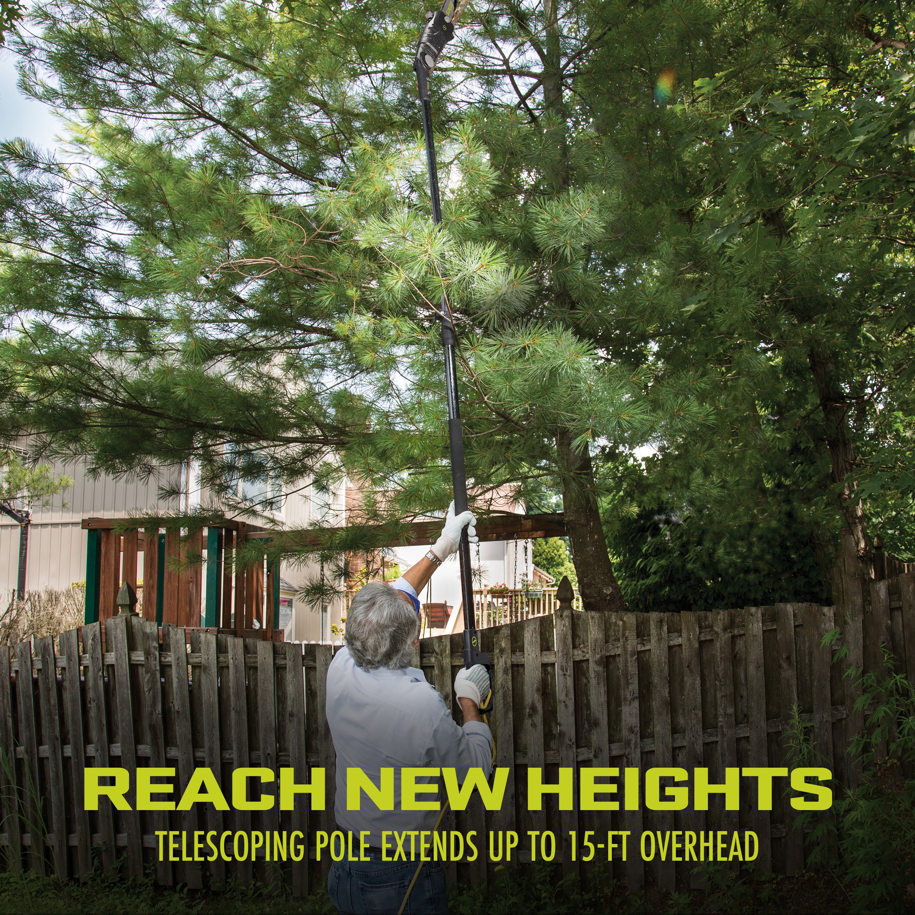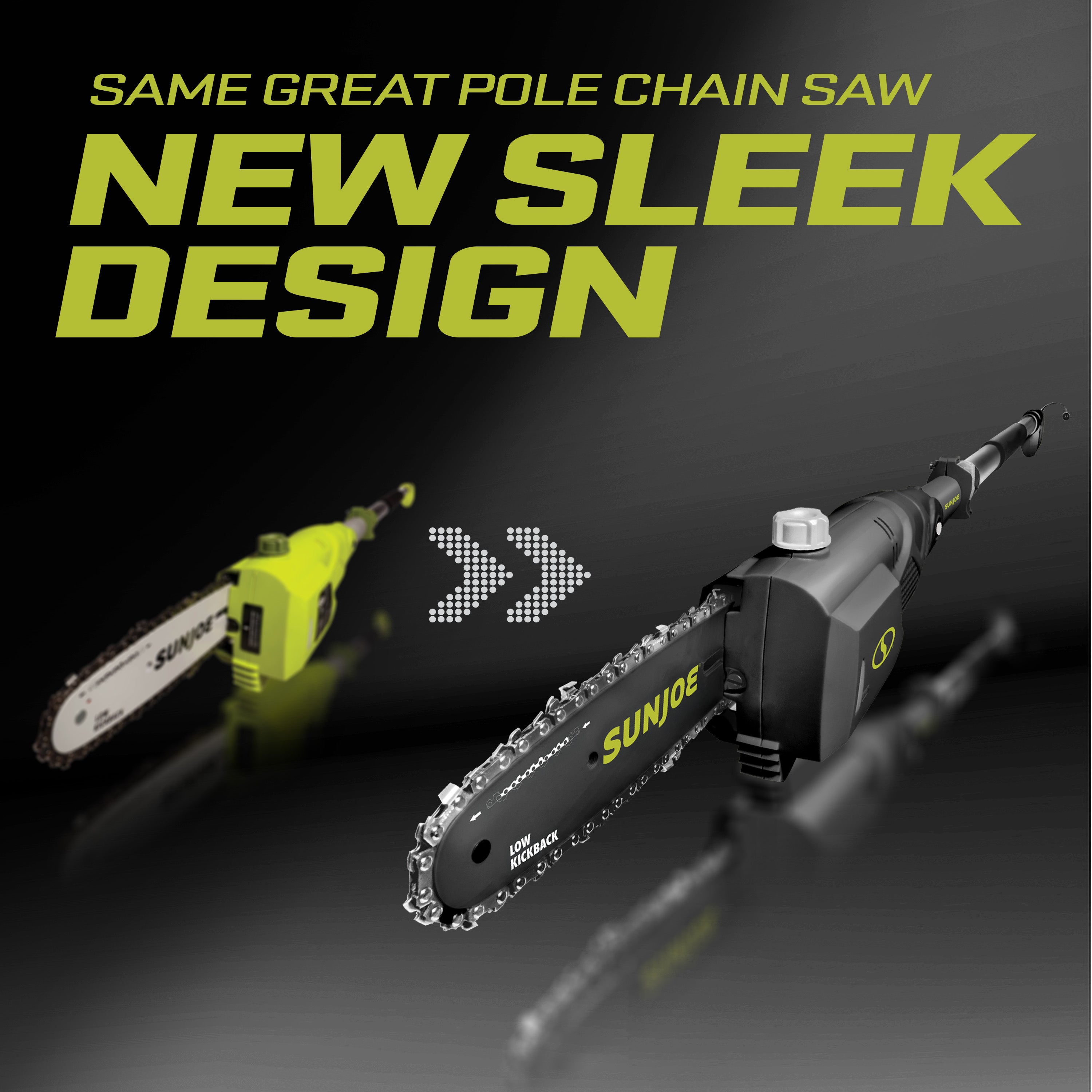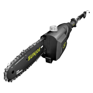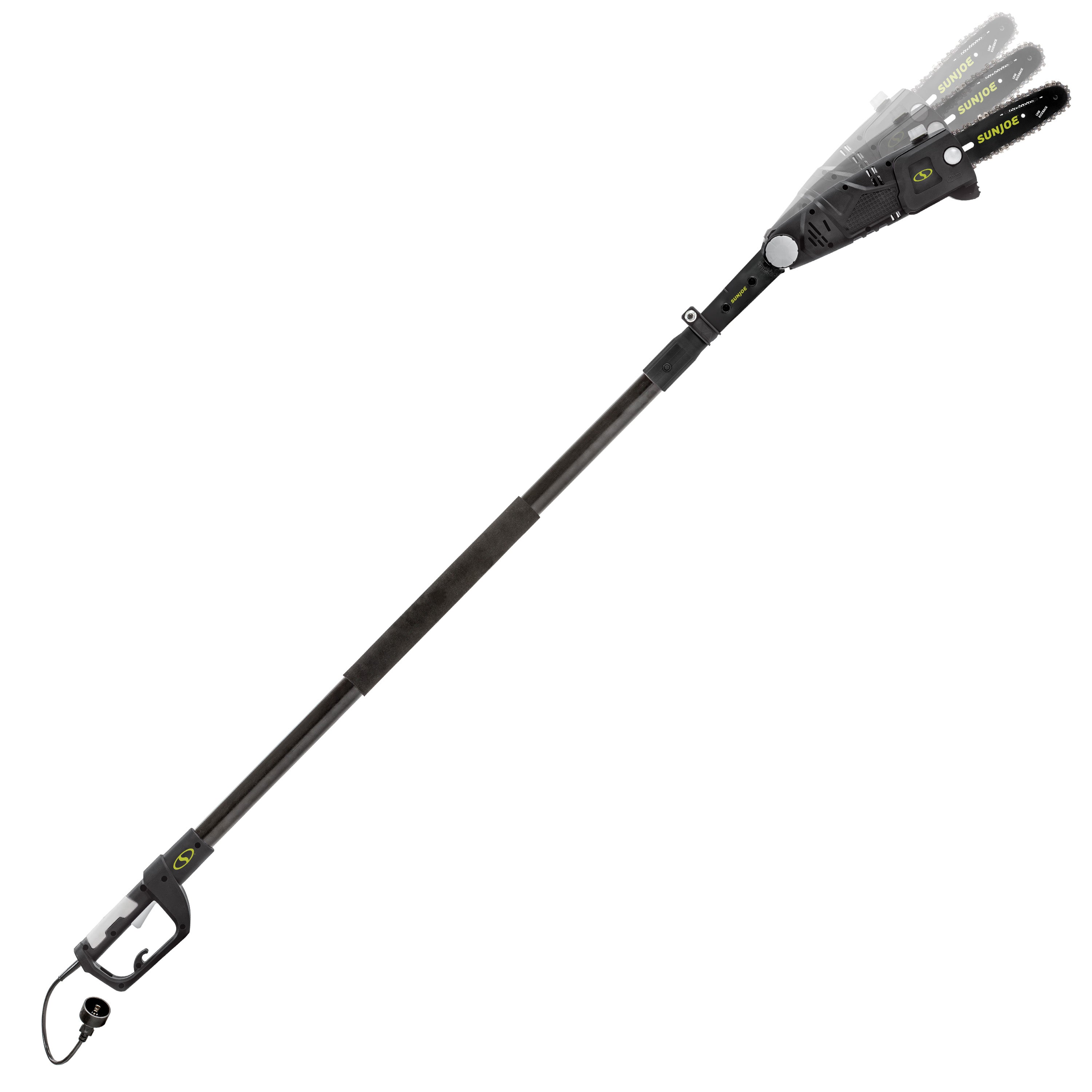 LET GRAVITY DO THE WORK® The Sun Joe® SWJ802E pole chain saw takes the danger and difficulty out of trimming your overgrown trees. At only 8.4 lbs, the Sun Joe SWJ802E is super lightweight and easy to handle. Stand safely on solid ground while adjusting Sun Joe's telescoping pole. Pole extends 9.4 ft to gain up to 15 feet of overhead reach!
