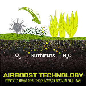 - AirBoost technology – spring steel tines for maximum thatch pickup