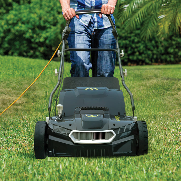 LET YOUR LAWN BREATHE. Achieve a lush, healthy lawn with the Sun Joe® AJ808E 15-inch Electric Lawn Dethatcher + Scarifier. Equipped with a powerful 15-amp motor, this high-performance dethatcher rakes a 15-inch-wide path in a single pass, making lawn maintenance faster and more efficient.