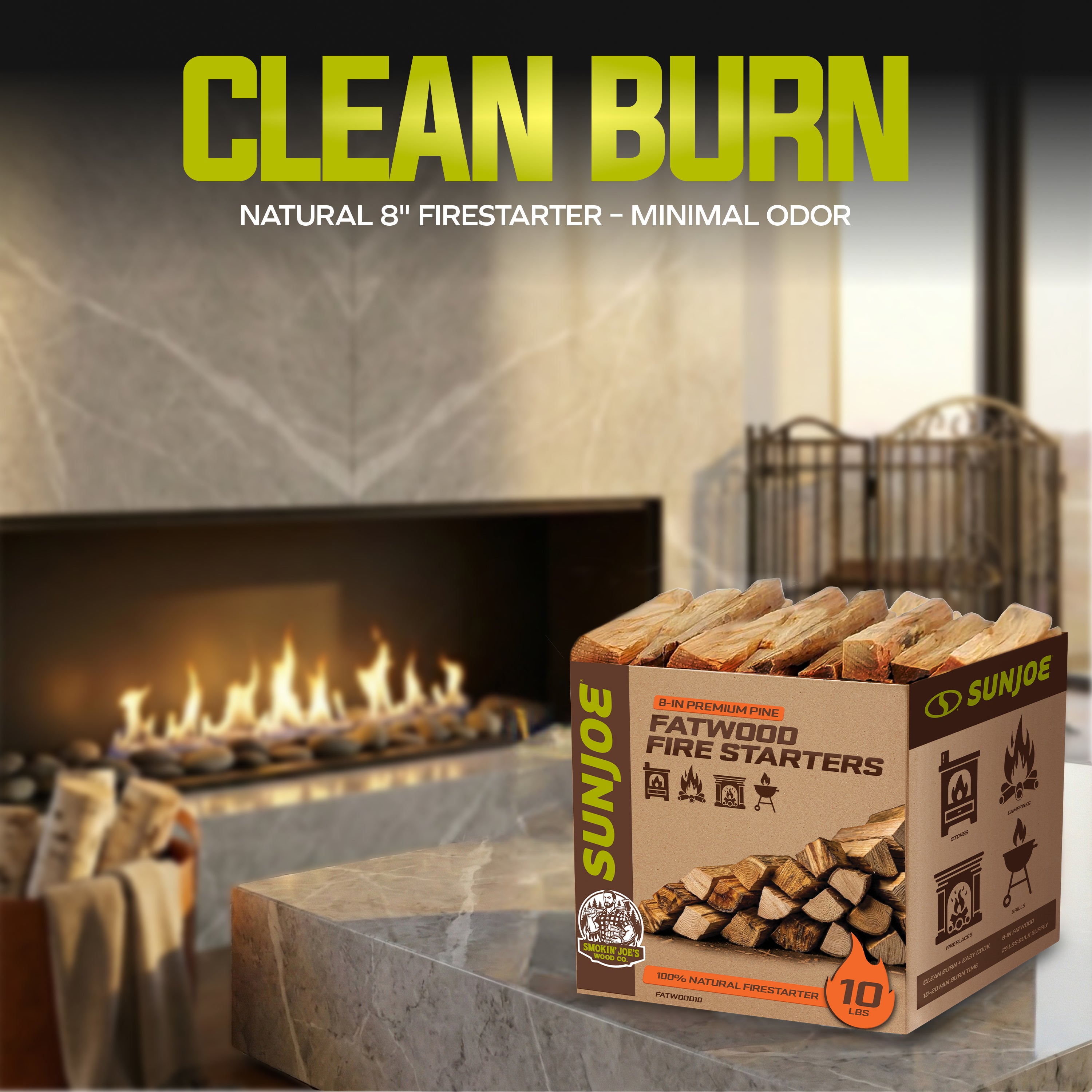 Sun Joe All-Natural Fire Starter Sticks | Pine Kindling for Fireplaces, Campfires, Wood Stoves, Fire Pits & Grills | 10 Lbs.
